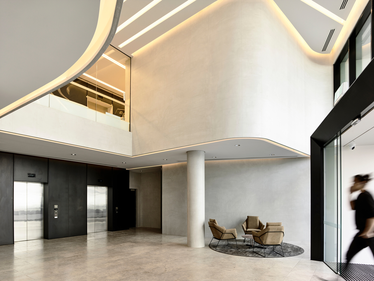 The entry draws upon a design language in Melbourne that has many entries carved out of the building skins.