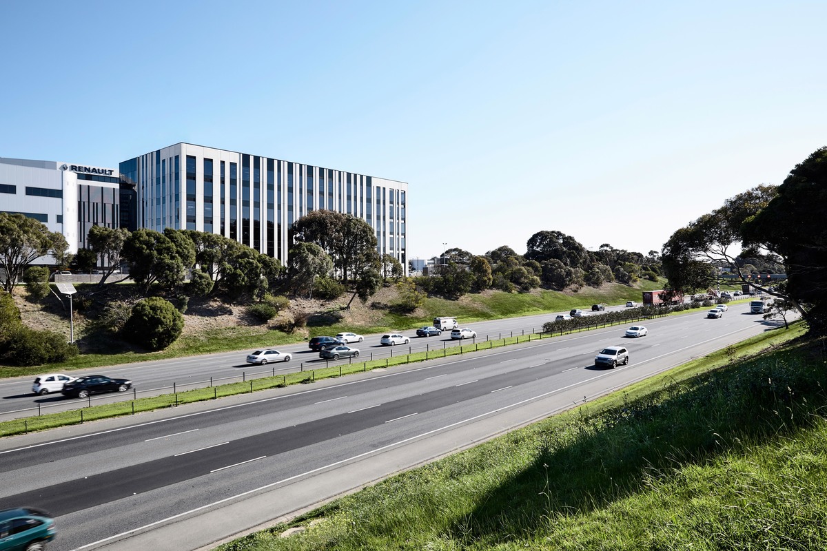 The building sits atop a cutting to the Monash Freeway to the north and intimacy of the Corporate Park to the south.