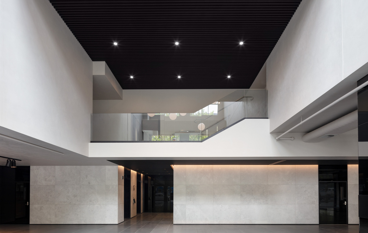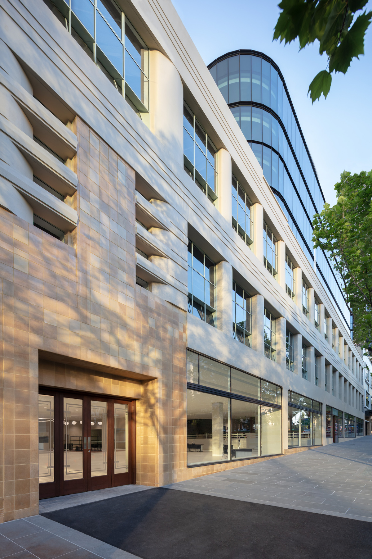 Muted tones were used throughout the tower so as not to overwhelm the light tones of the heritage façade.