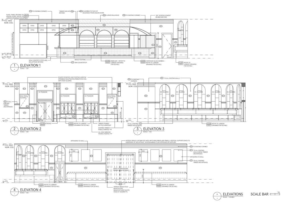 The history of the building’s architecture has been carefully honoured, re-establishing the original layout of the 1930s bar, making sense of the surrounding architecture and curved windows.