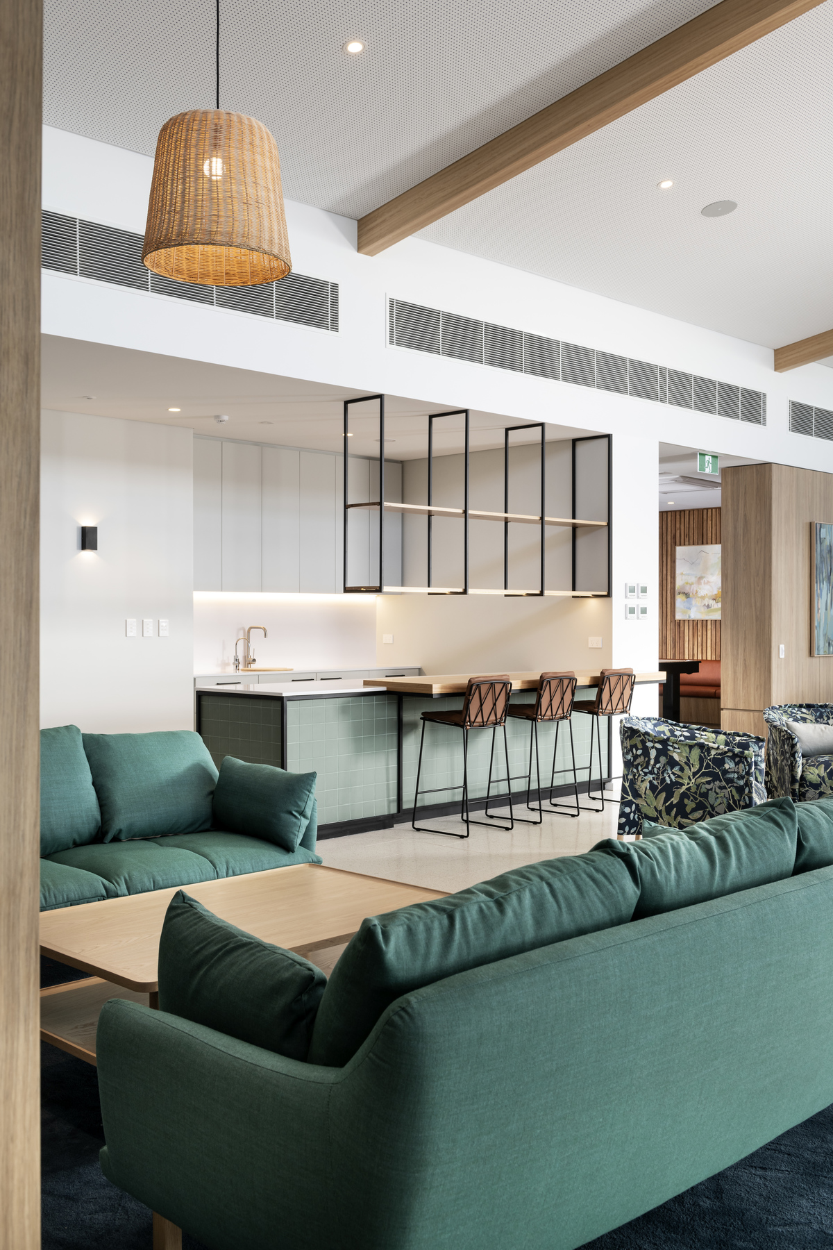 Furniture, artwork and indoor plants provide a natural and soft yet textural layer to complete an appropriate fit-out for today’s over 55’s living.
