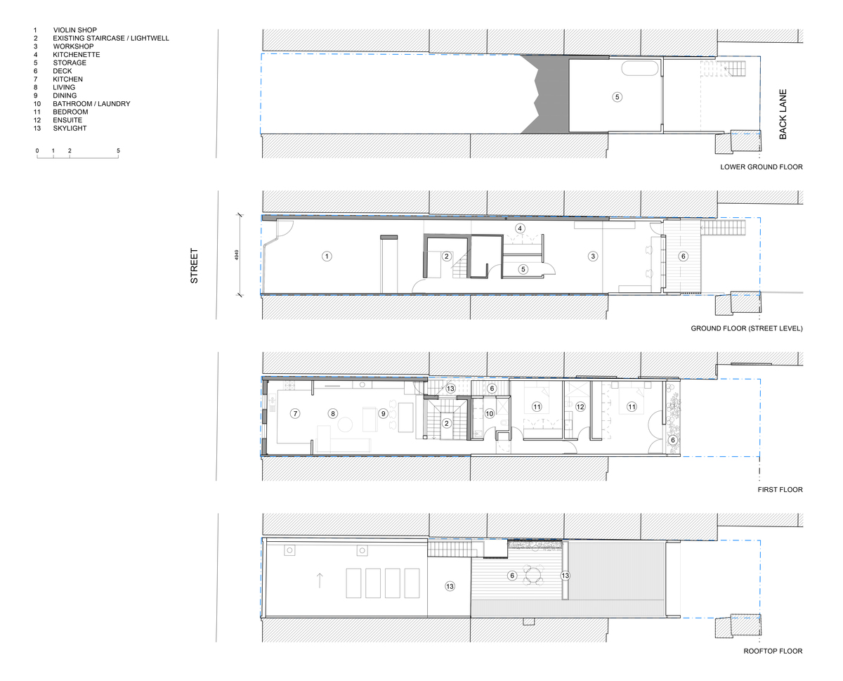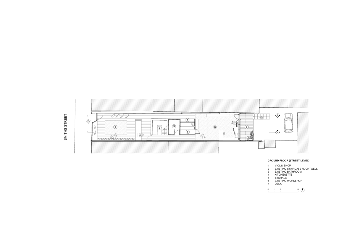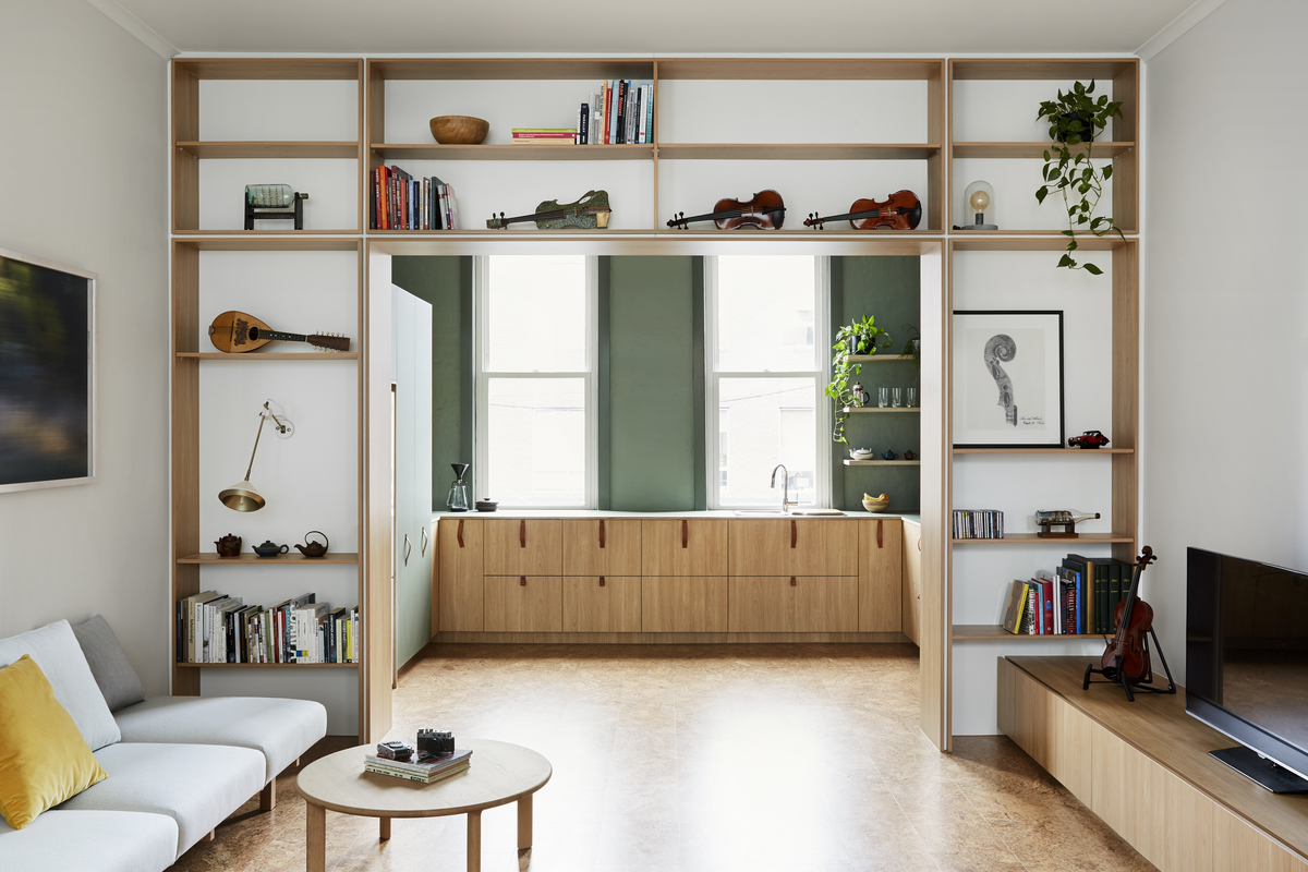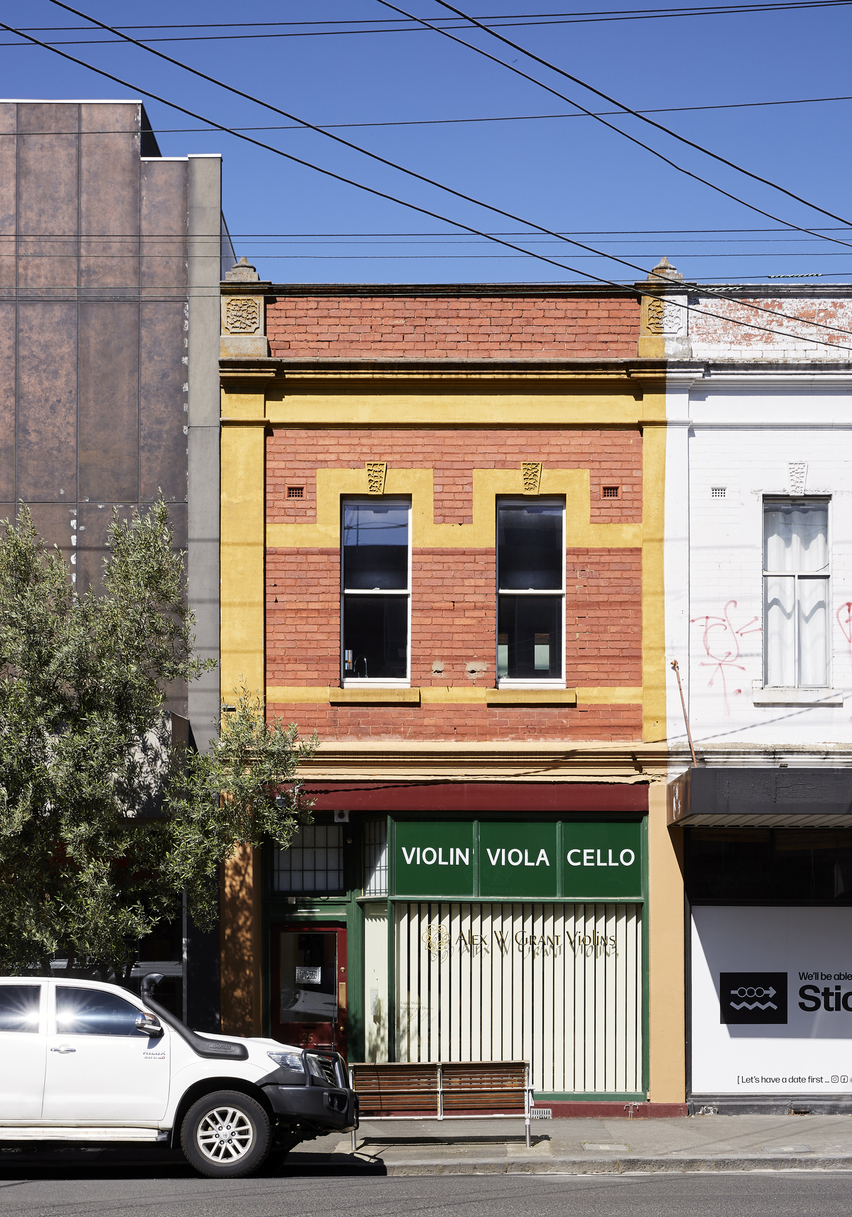 Specialist violin sellers and repairers, tsai Design’s clients had retreated to a rundown kitchen, living, and bedroom above their Collingwood shop for 15 years.