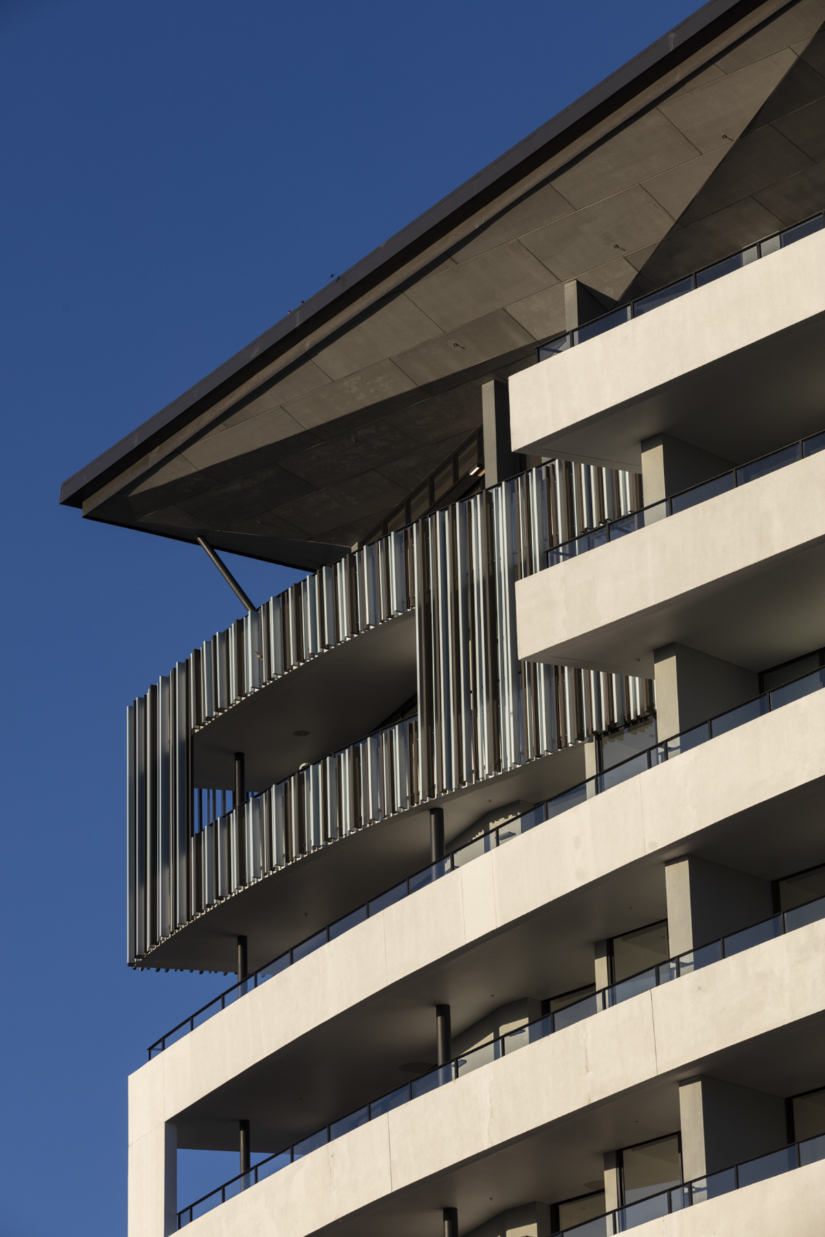 Some of the challenges involved complicated floor slab junctions, in order to realize the desired apartment layouts and sophisticated hybrid steel and timber connections to achieve the curved, seemingly cantilevered balconies.