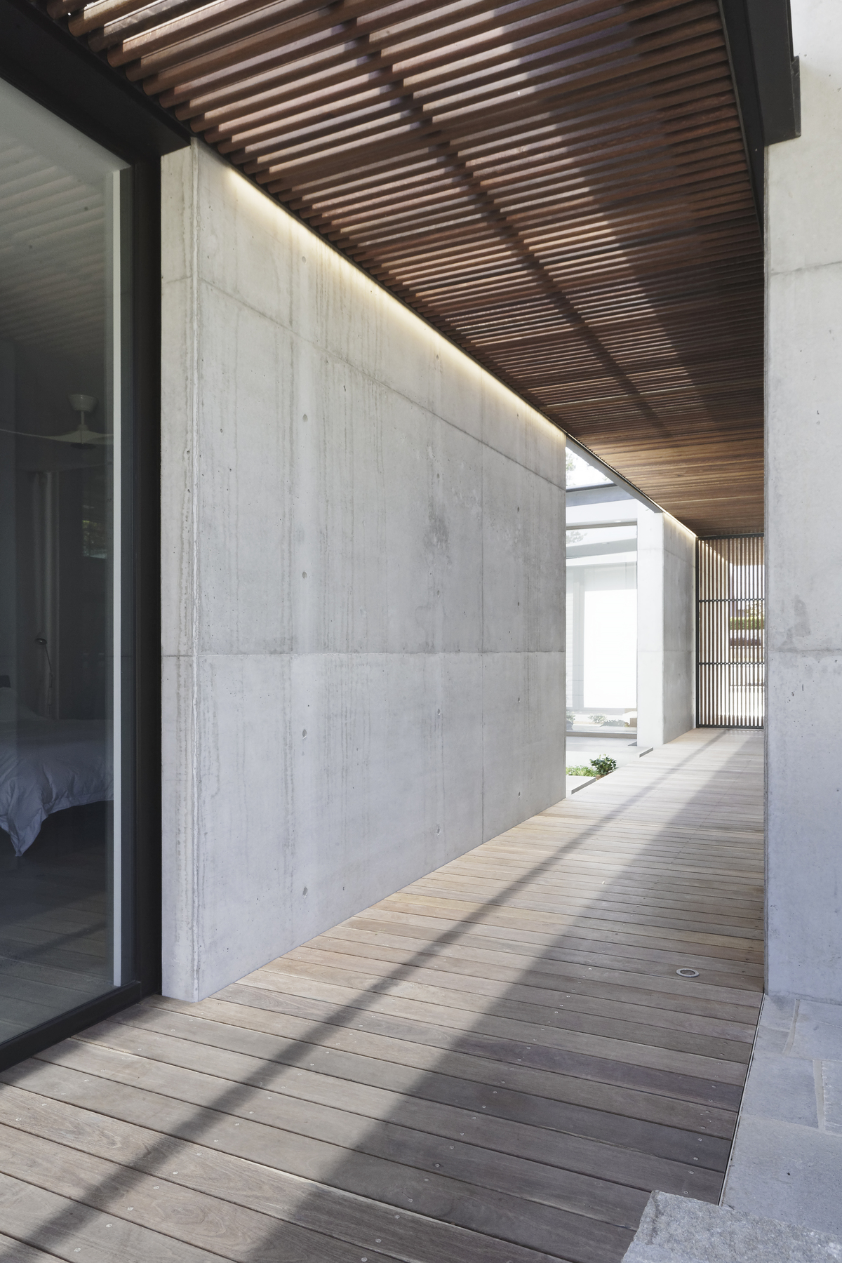 There is no differentiation between architecture and interiors: Interior becomes exterior, joinery becomes space modulator, and materials become textural art brought to life by the sun.