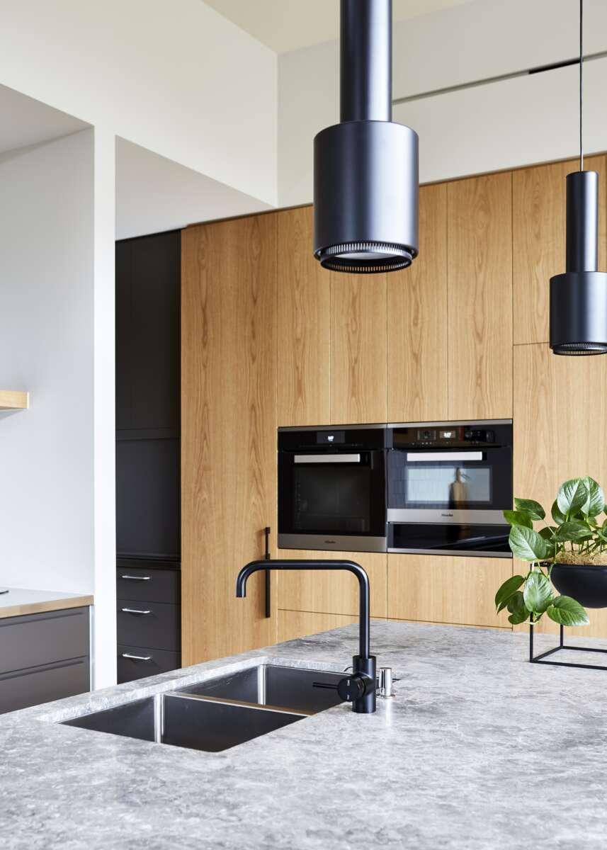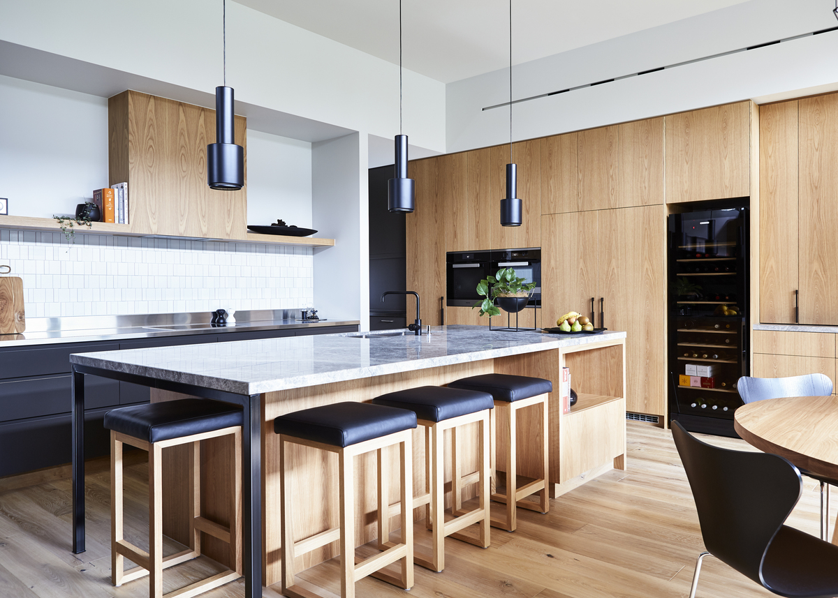 Featured in the July 2019 issue of Home Beautiful magazine, Beaumaris House is layered with rich timber textures, from the floorboards to the natural American Oak cabinetry.