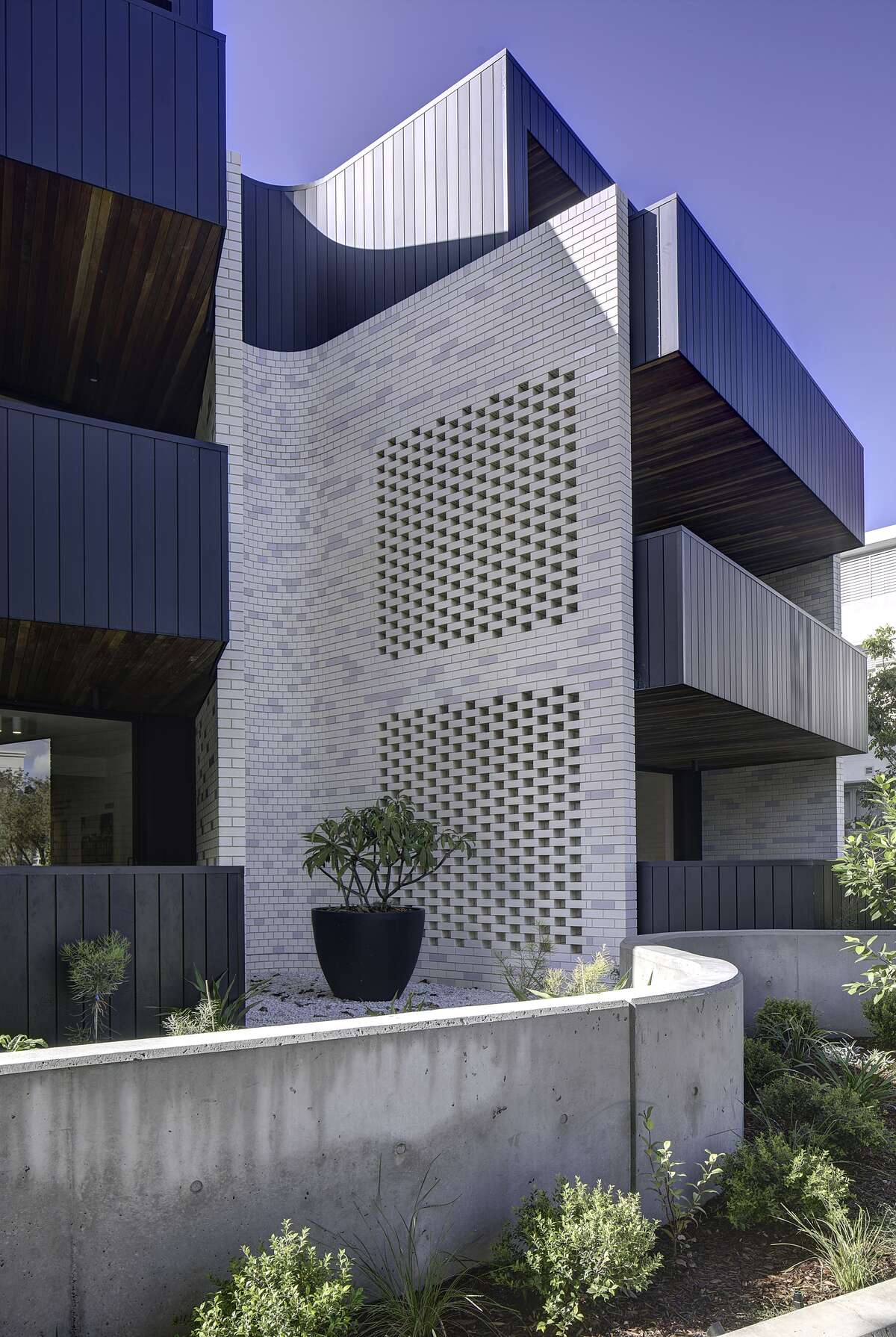 That expression is enhanced by the large white brick blades that are offset by recessive black metal cladding.