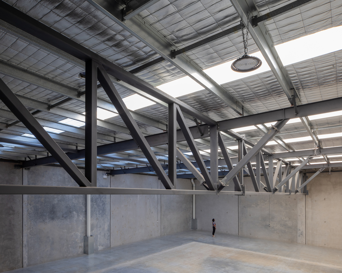 Big Blue functions as a concrete shell, with a single truss allowing for vast, uninterrupted space.