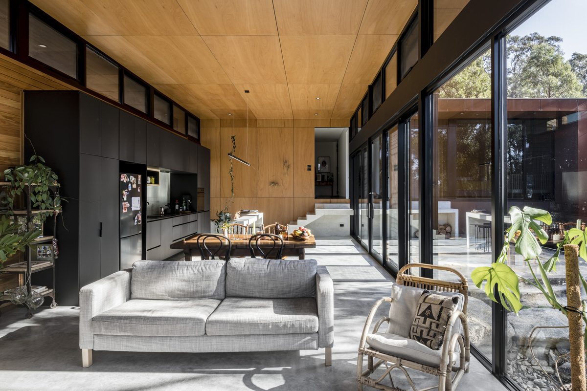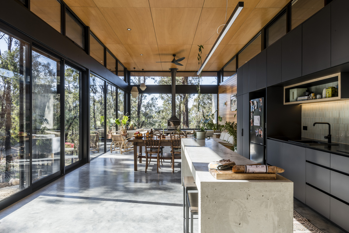 Subdued, low-maintenance materials have been utilized so that the building will continue to age gracefully and settle in further with its bush context.
