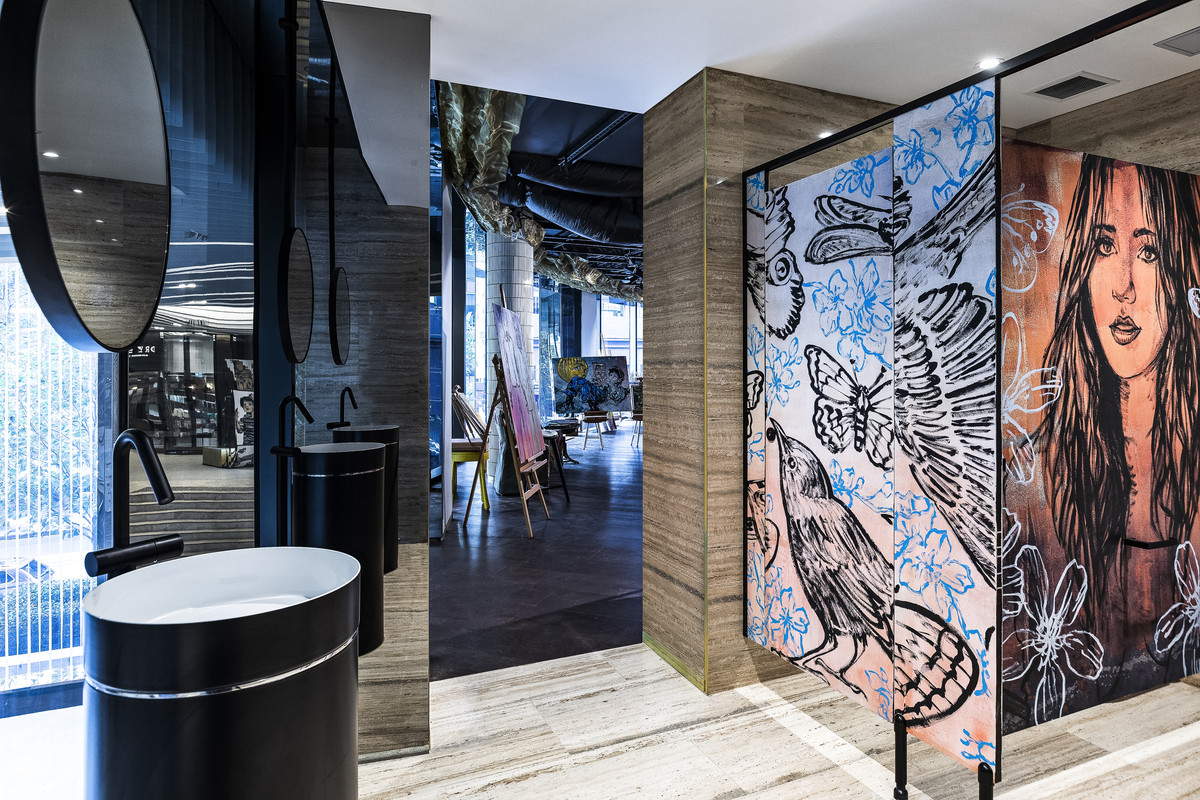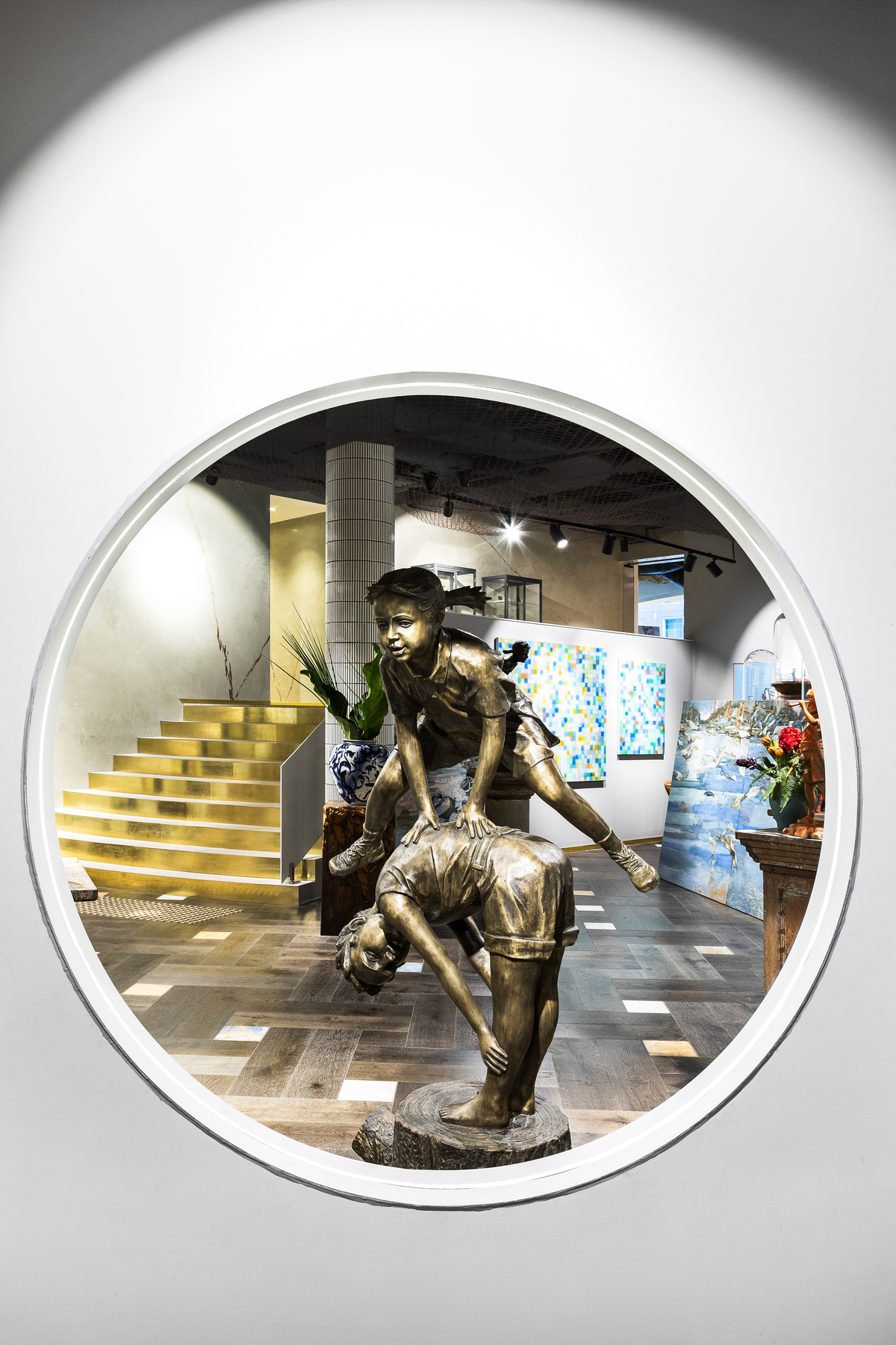 The gallery was designed by the STUDIOMINT team to house aspects of bronze and resin throughout the walls – further complimenting Bromley’s sculptures.