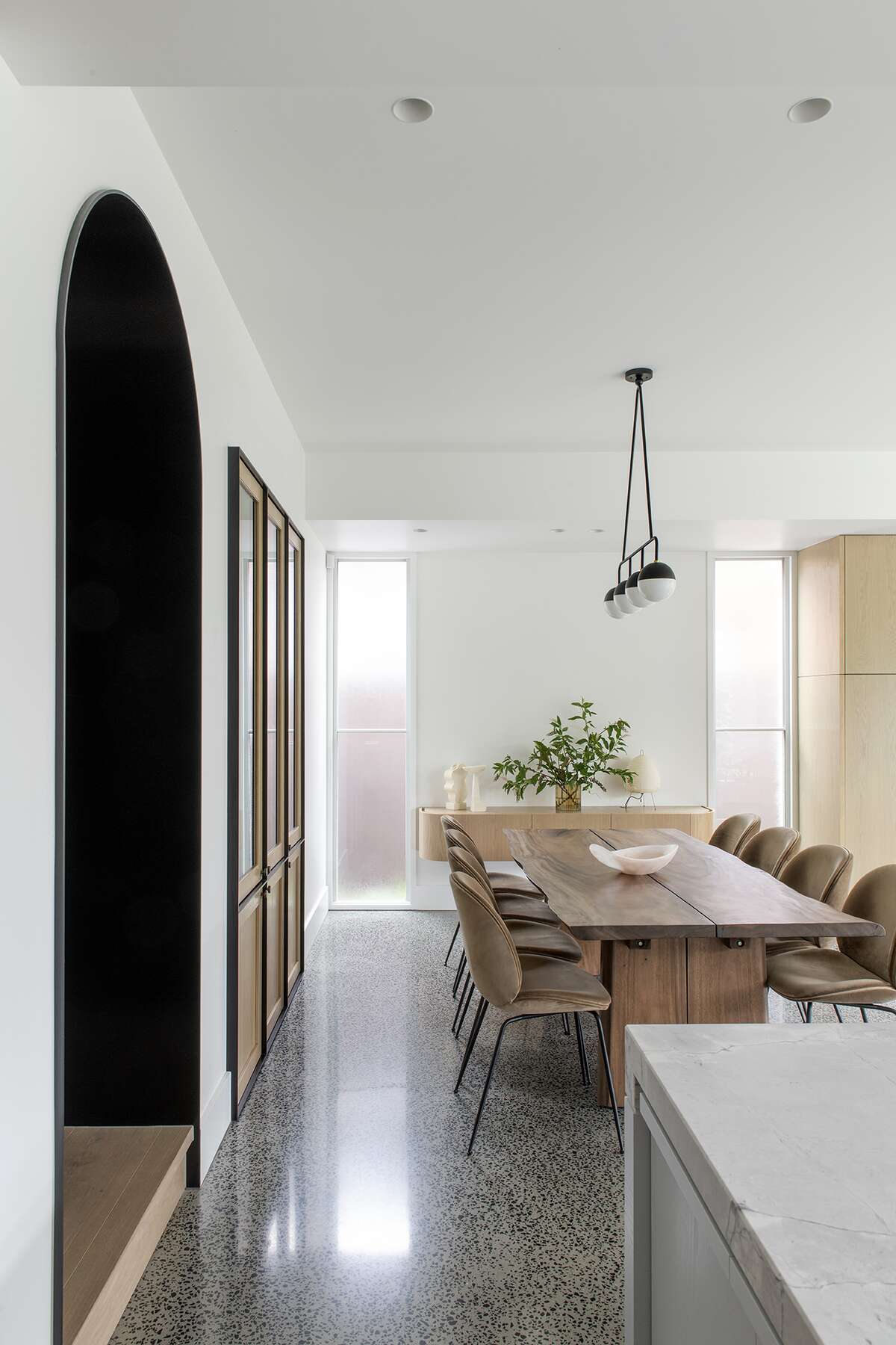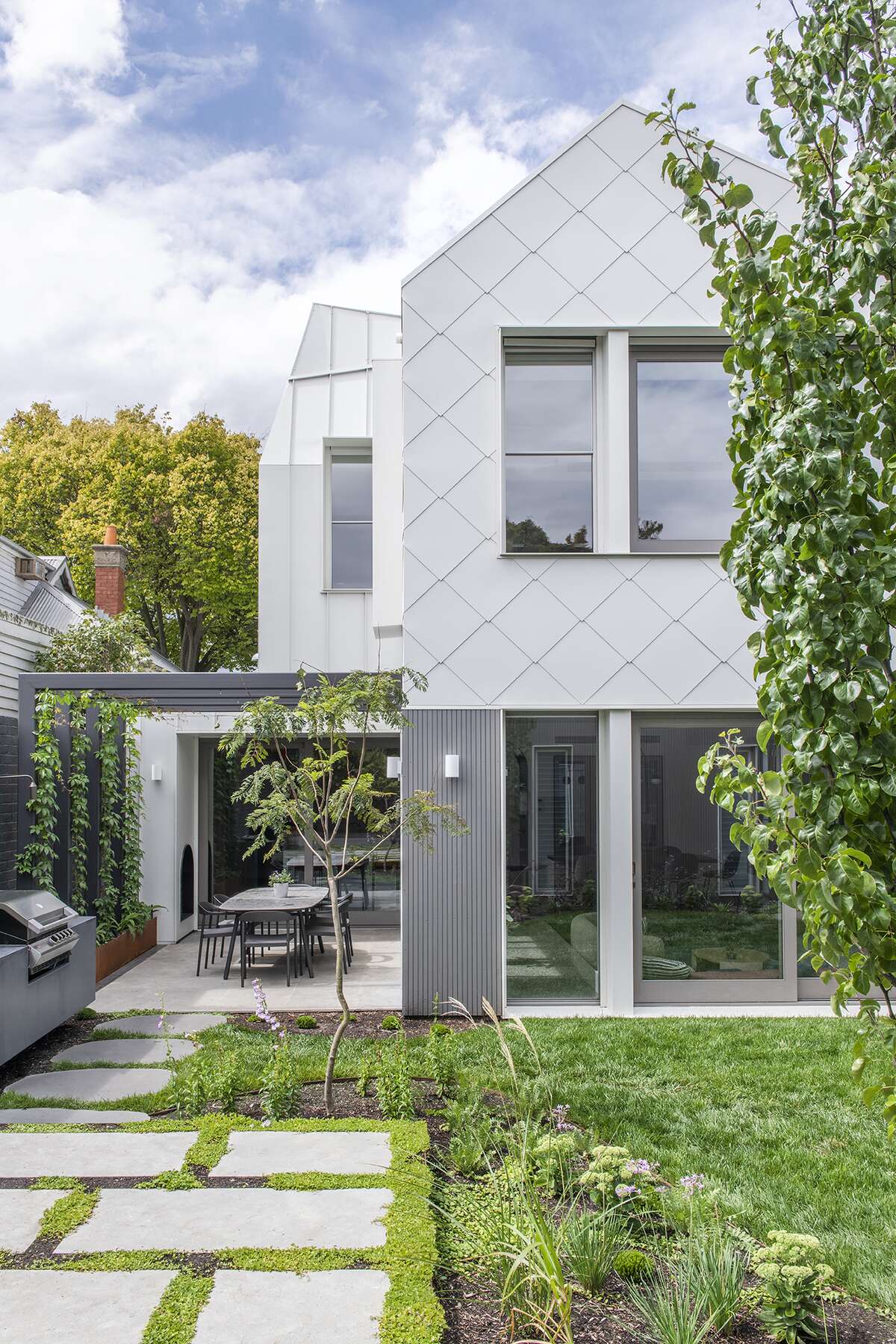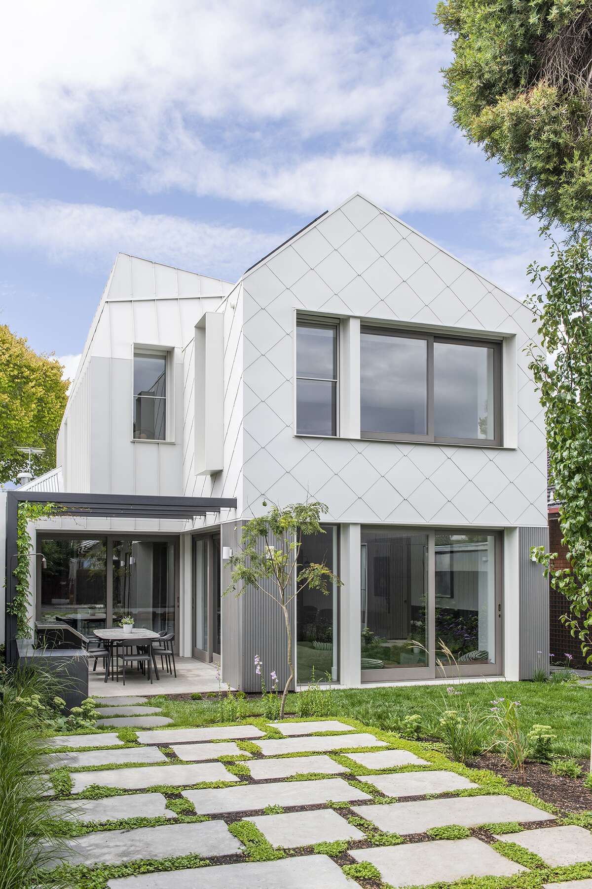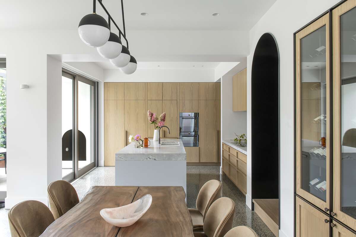 The renovation design by Lisa Breeze Architect restores the front of the home and adds a substantial multi-level addition tucked away behind its heritage rooms at the front.