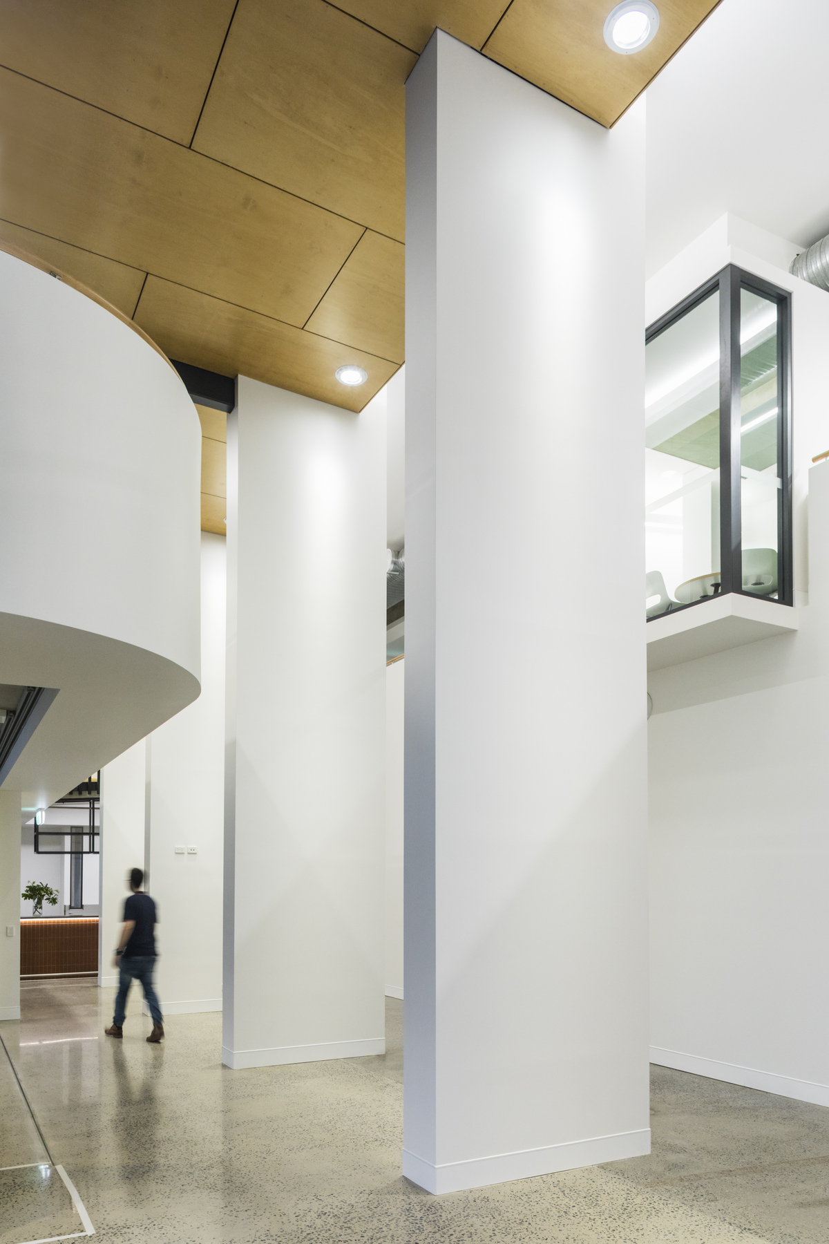 Fringed with landscaped breakout spaces, a laneway café, a palette of Herberton Porphyry, local timbers and Indigenous plants, the ‘Big Verandah’ extends over the footpath to serve as a green, shady oasis beneath the double-height colonnade.