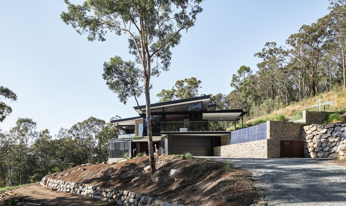 Texturally rich, and oriented with panoramic views of the Brisbane skyline, this long-term family home is a contemporary beauty that allows hill rolling, garden playing, and family entertainment.