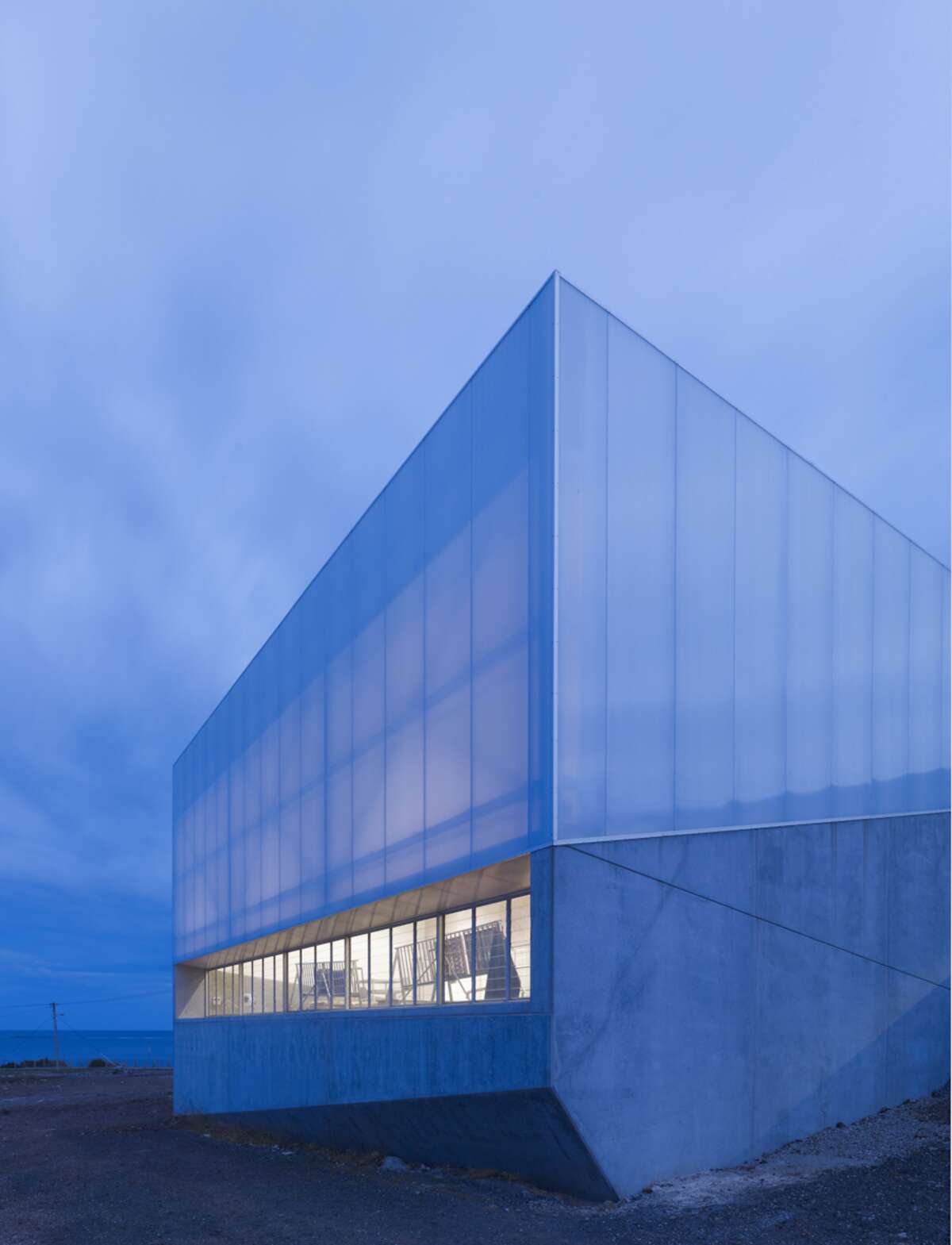 The exterior is an incredibly lean combination of precast concrete and translucent Danpalon sheeting.