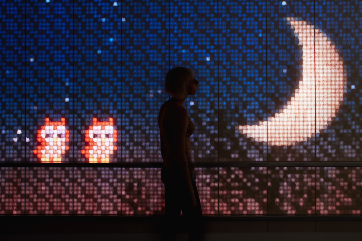 DesignInc collaborated with art and technology company Eness to implement the panels and program animations that change and grow with interaction.