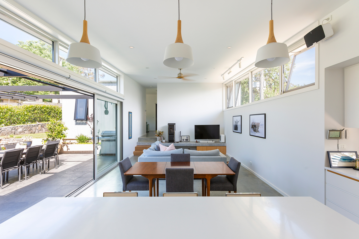 The solar passive design delivers northerly light into all living areas and bedrooms, whilst carefully located southerly windows allow cross ventilation and connectivity with the adjacent well used neighbourhood pathway.
