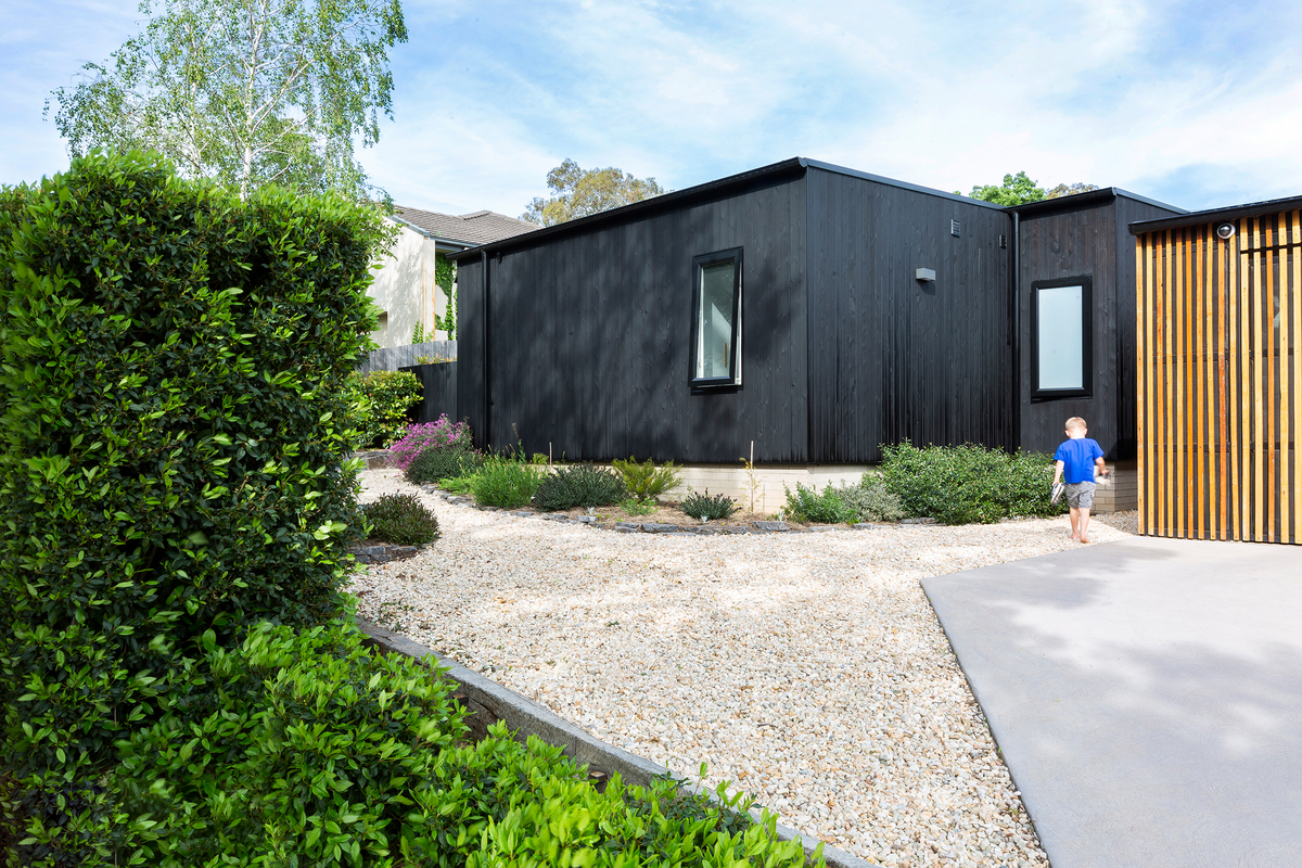 Its signature elements are the Shou Sugi Ban cladding, which was beautifully installed by the owner, and a recycled hardwood slatted screen to the carport, which was made from the roof battens of the original cottage.