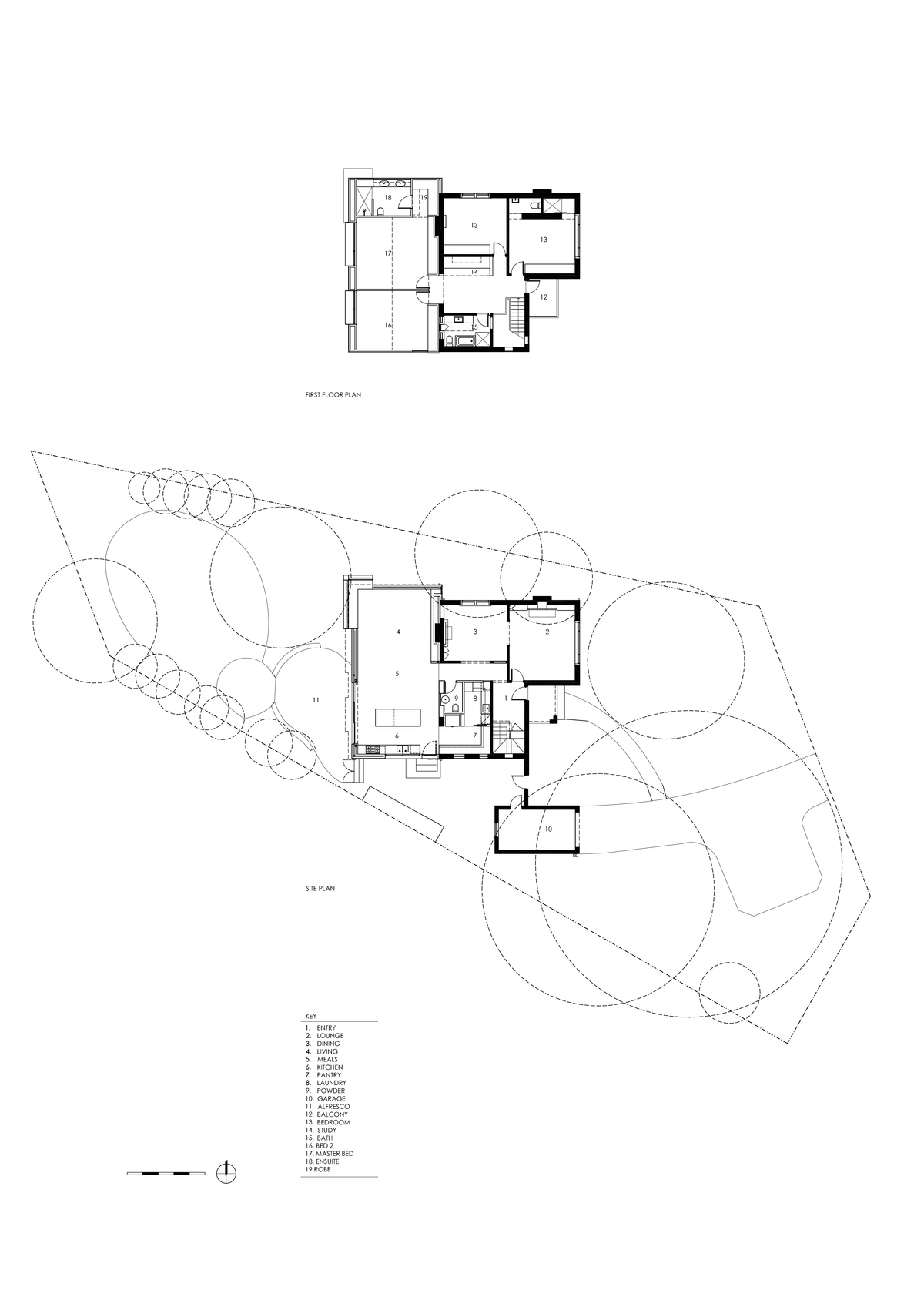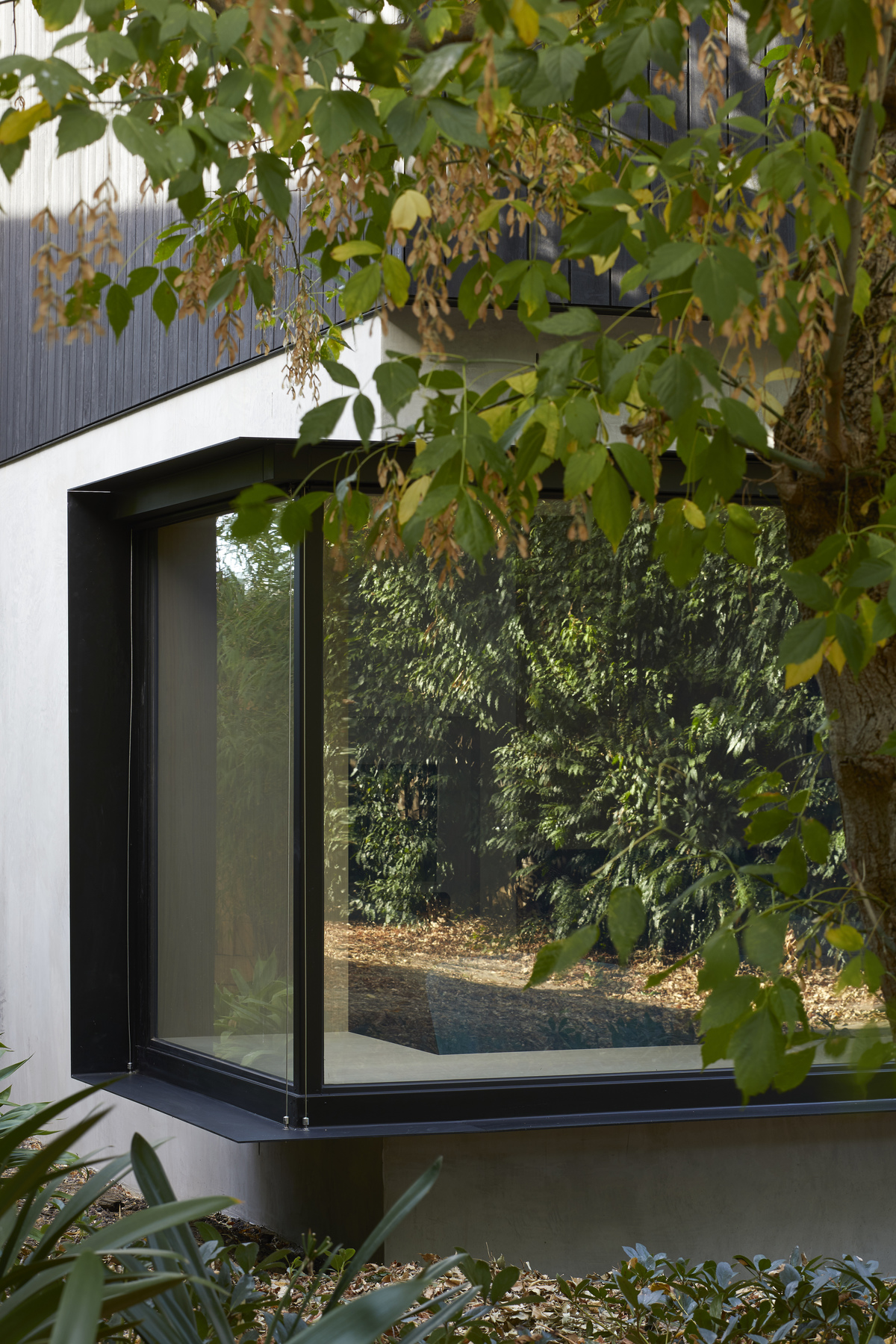 Similarly the first floor was reconfigured to afford private views into tree canopies and tall hedges from the bedrooms.