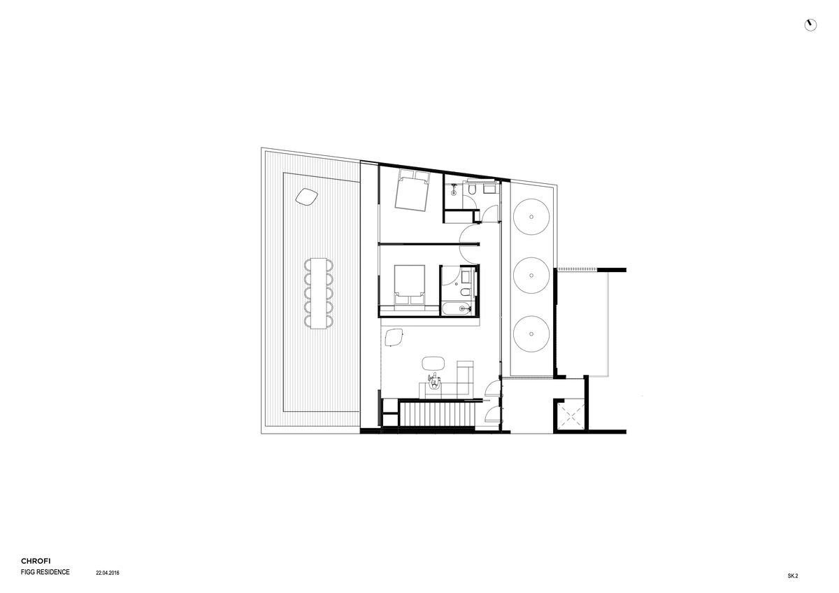 The CHROFI design called for a large sunken courtyard to be cut into the escarpment at the rear of the dwelling to provide a meditative and calming outlook from adjoining spaces and a juxtaposition to the site’s expansive and sometimes extreme primary aspect.