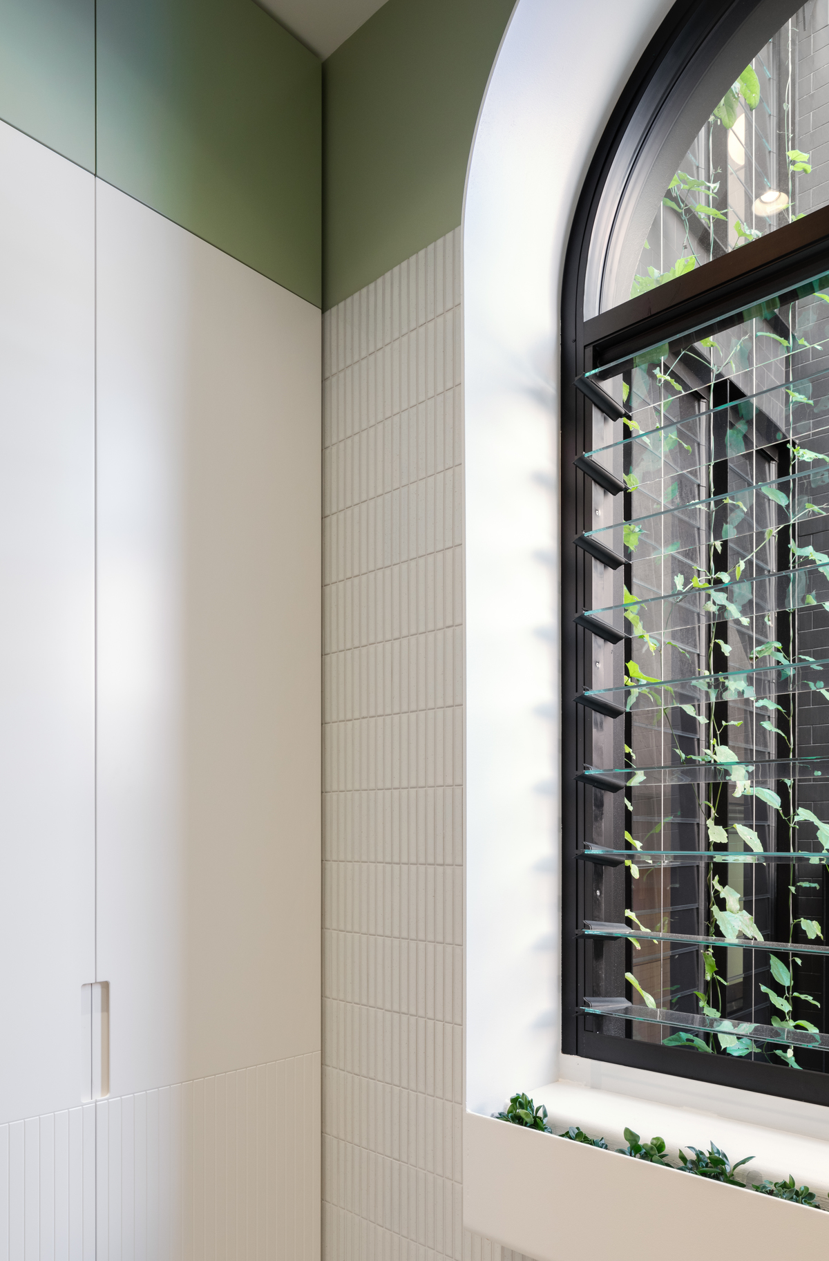 The greens through Concrete Blonde are a nod to the native gum trees swaying in the backyard, the homes former kitchen colour, and memories of our clients extended family homes in Greece.