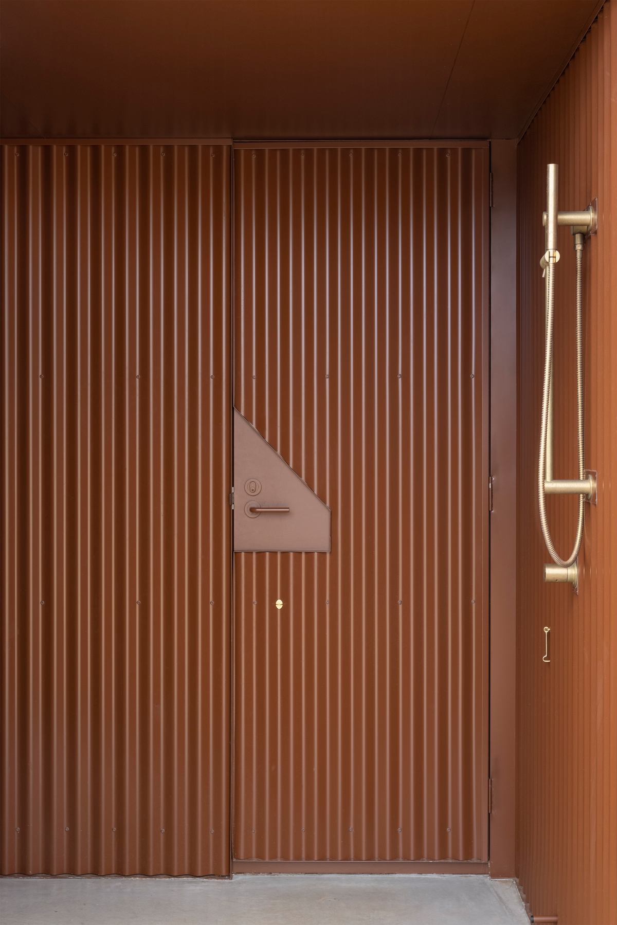 On the western elevation, the ubiquitous chimney stack seen on the historic shacks is reimagined as a sunken bath, thus connecting the bather to the surrounding paddock and resident sheep, as well as long views to the bay beyond.