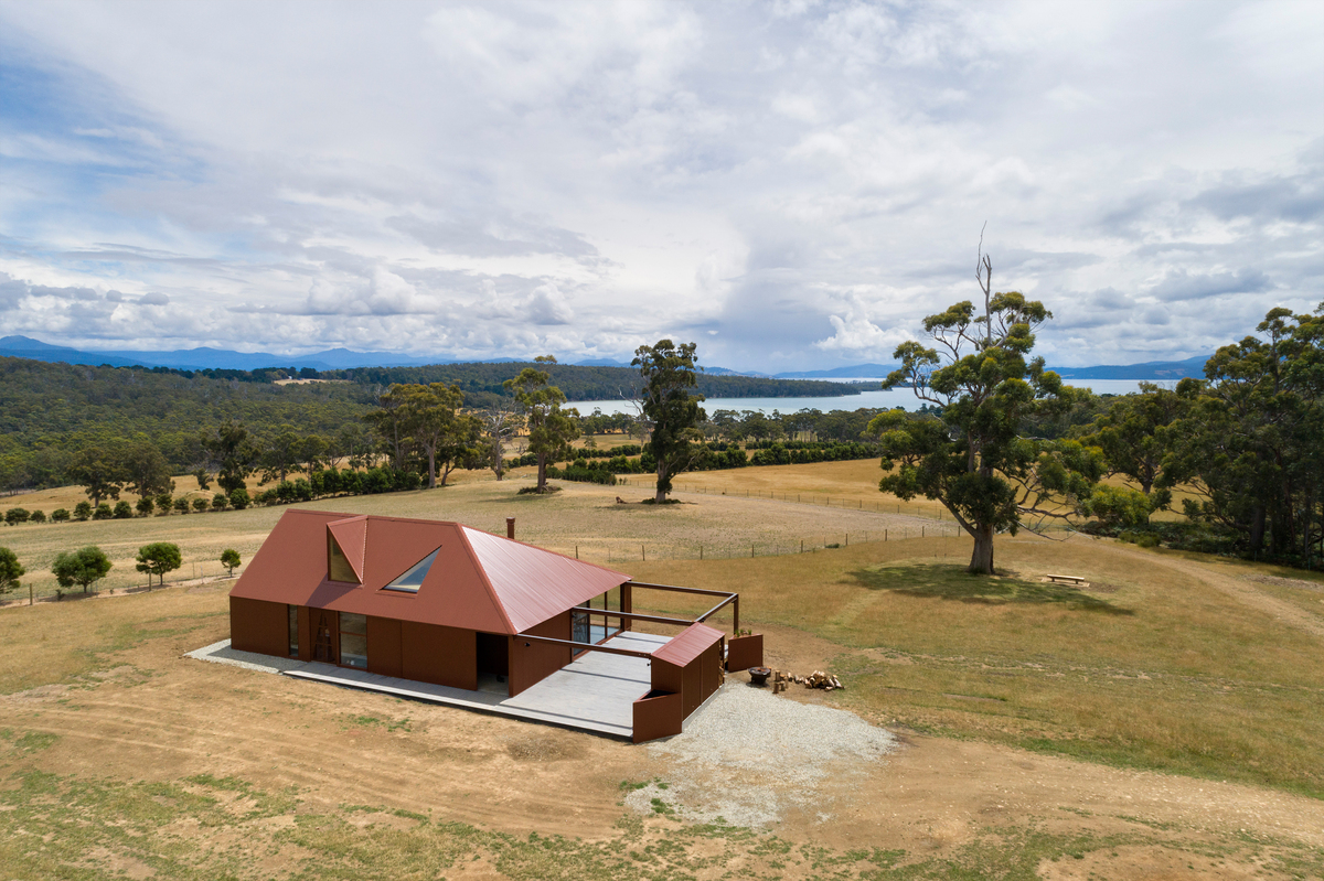 Designed by FMD Architects and nestled in the rural surrounds of Bruny Island, Tasmania, Coopworth is a contemporary interpretation of a country farmhouse.
