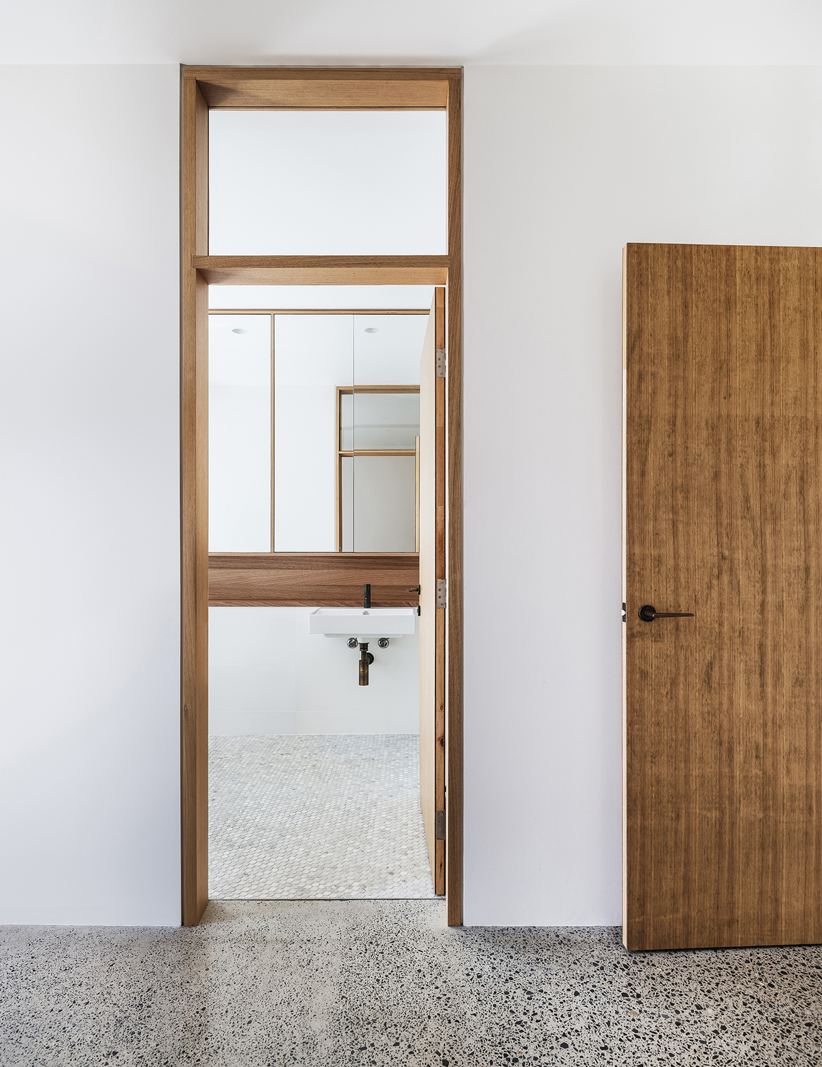 Raw concrete floors and minimal finishes in bathrooms address the brief for a pared back and honest character.