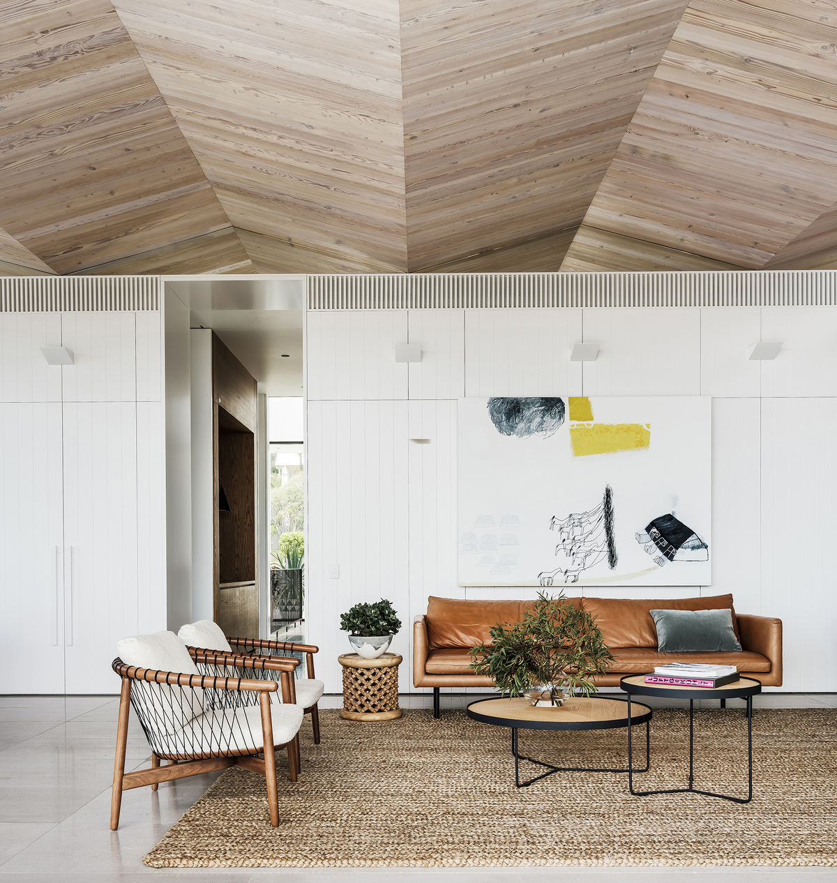 Natural vaulted timber ceilings fold out from the entry area and enhance the beautiful ocean and mountain views.