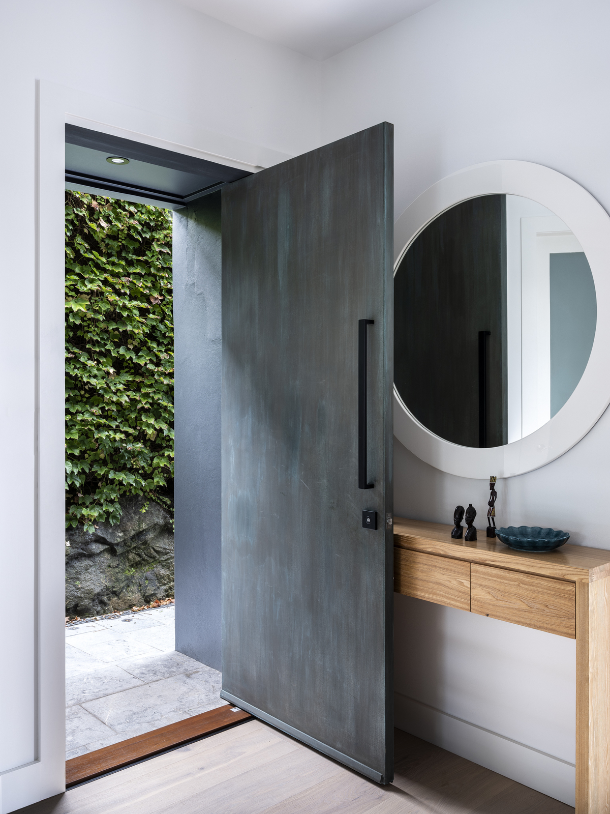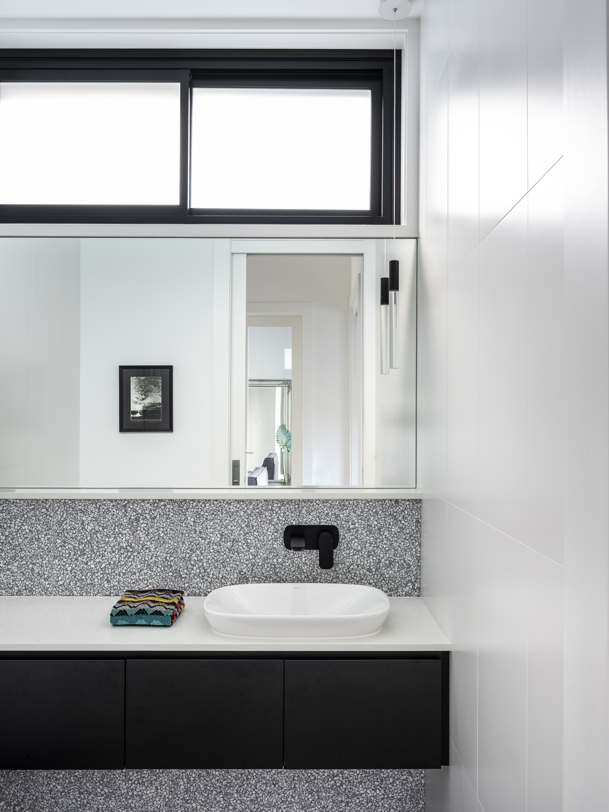 The warmth of the timber is complemented by a refreshing monochromatic palette adopted throughout.