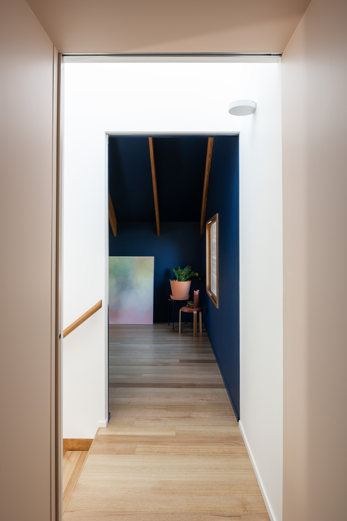 The northern face of these spaces is lined with sliding doors, allowing the whole space to open up and allow the life of the house to spill out and occupy the full width of the site.