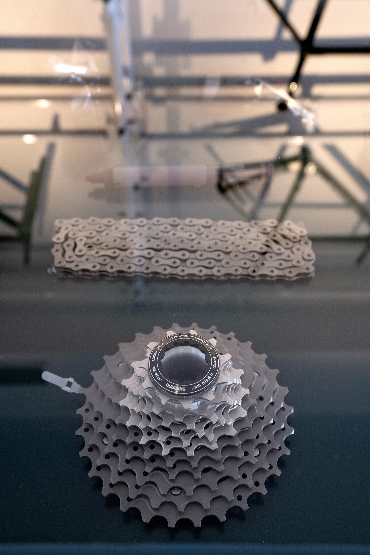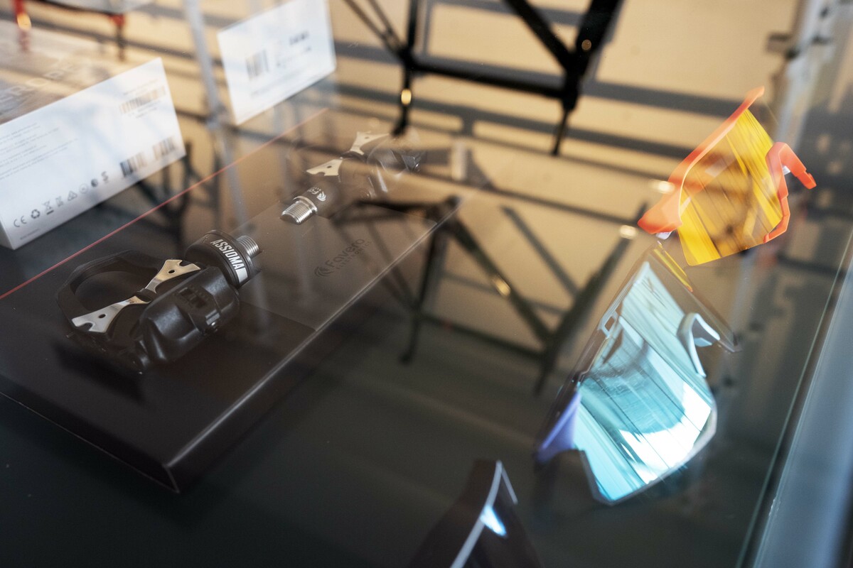 For shelving the GSB-N Studio team utilised standard perforated decking with a glass plate added to create a flat surface to display cycling accessories.