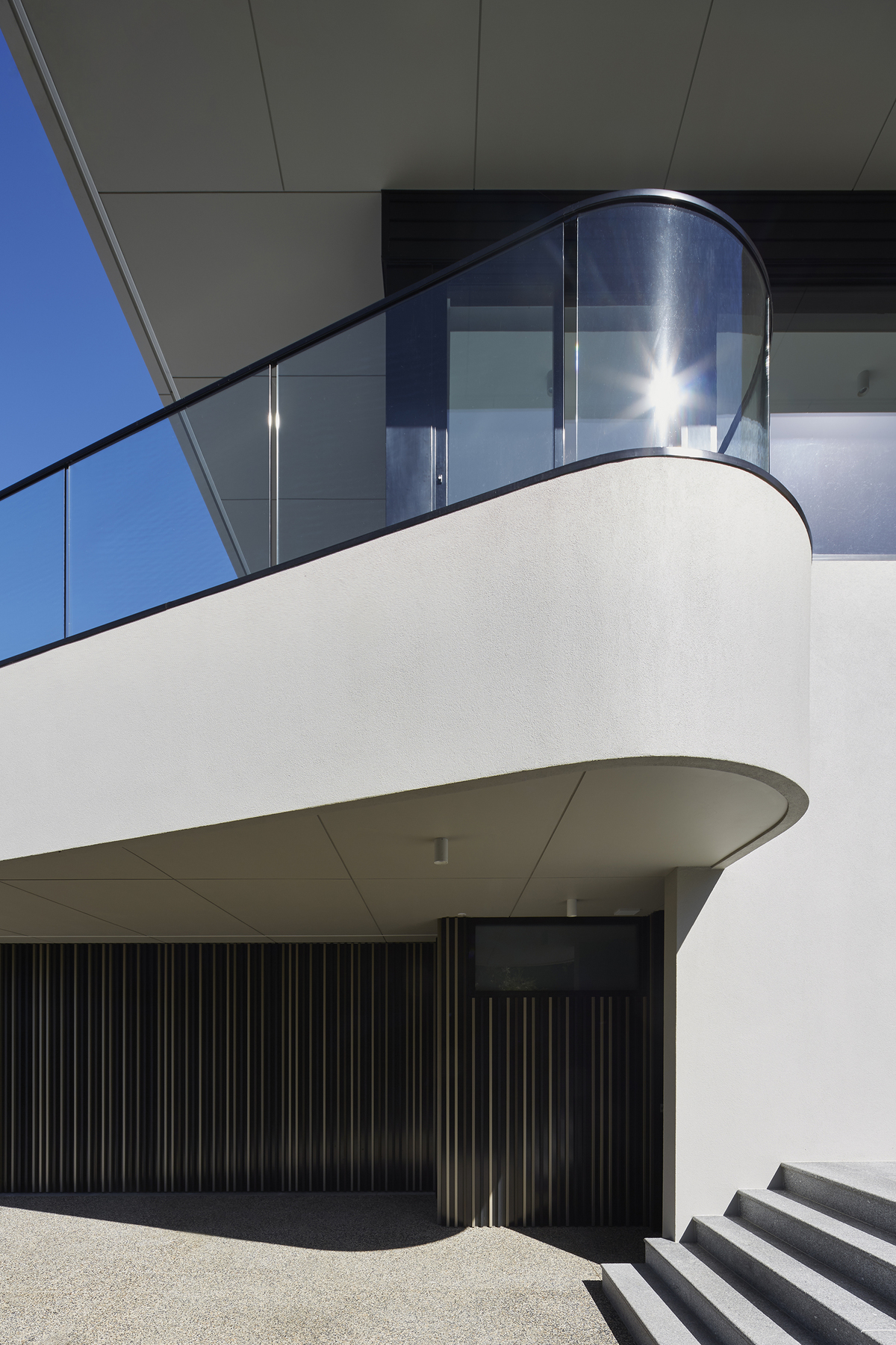 The design language celebrates the idea of moving through space, with the architecture being more expressive on the vertical circulation routes, to the entry, and within the house.