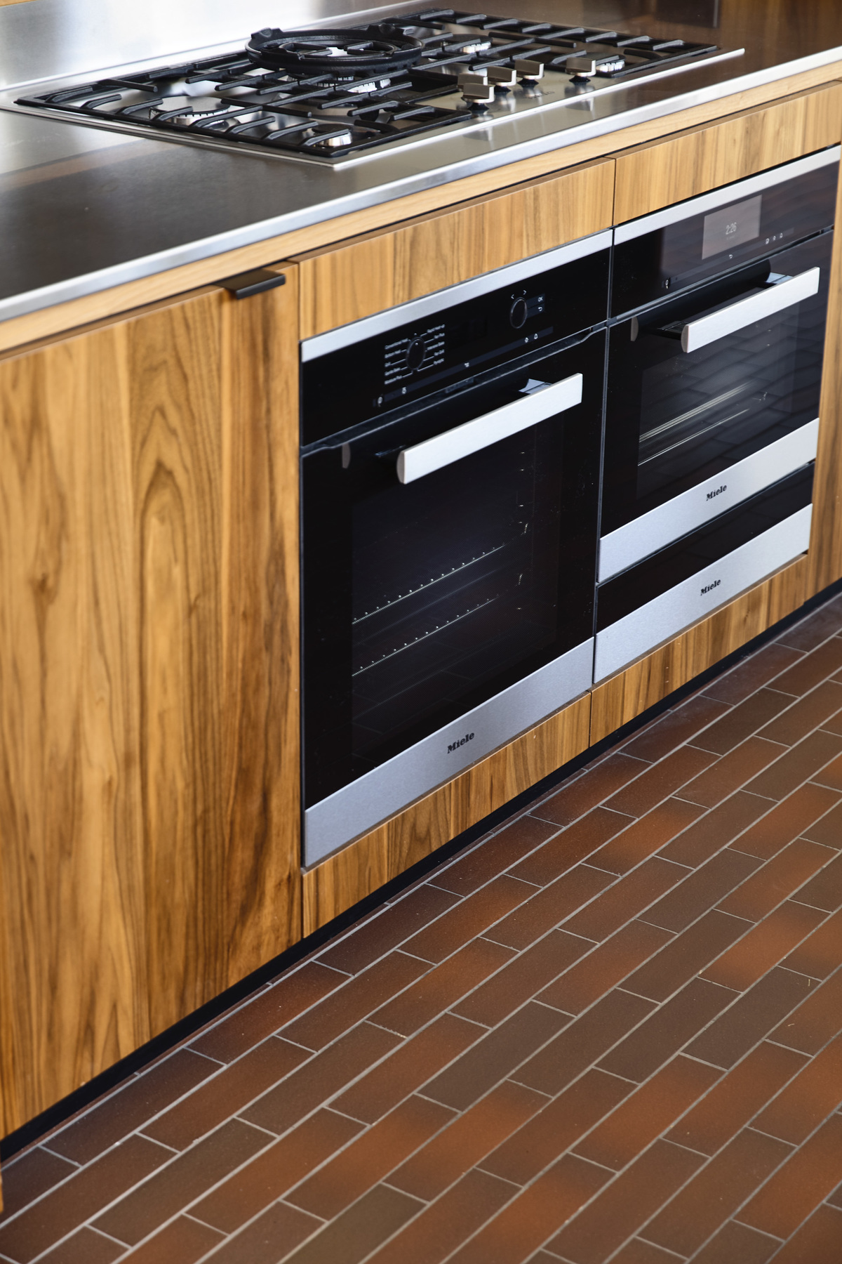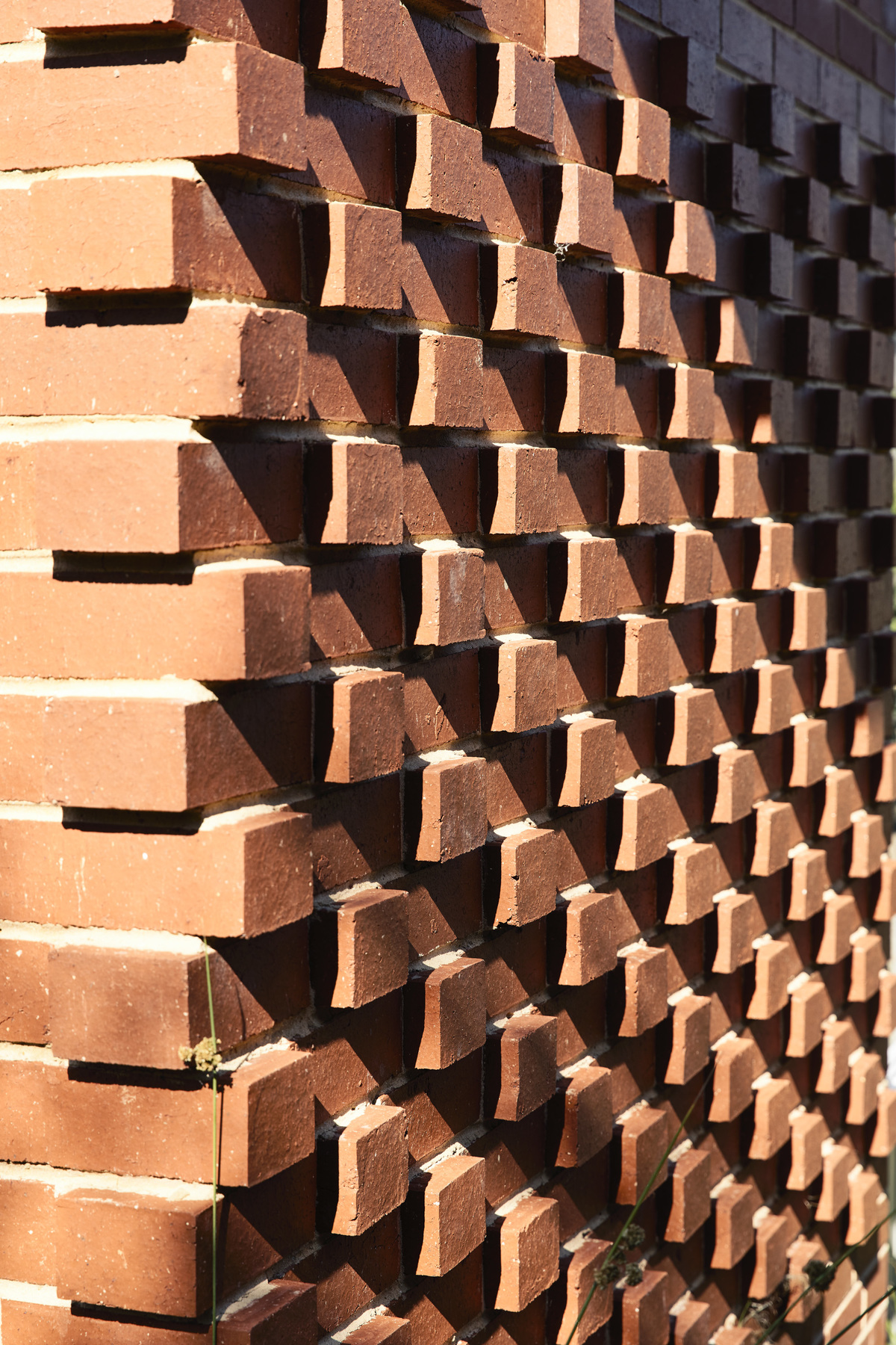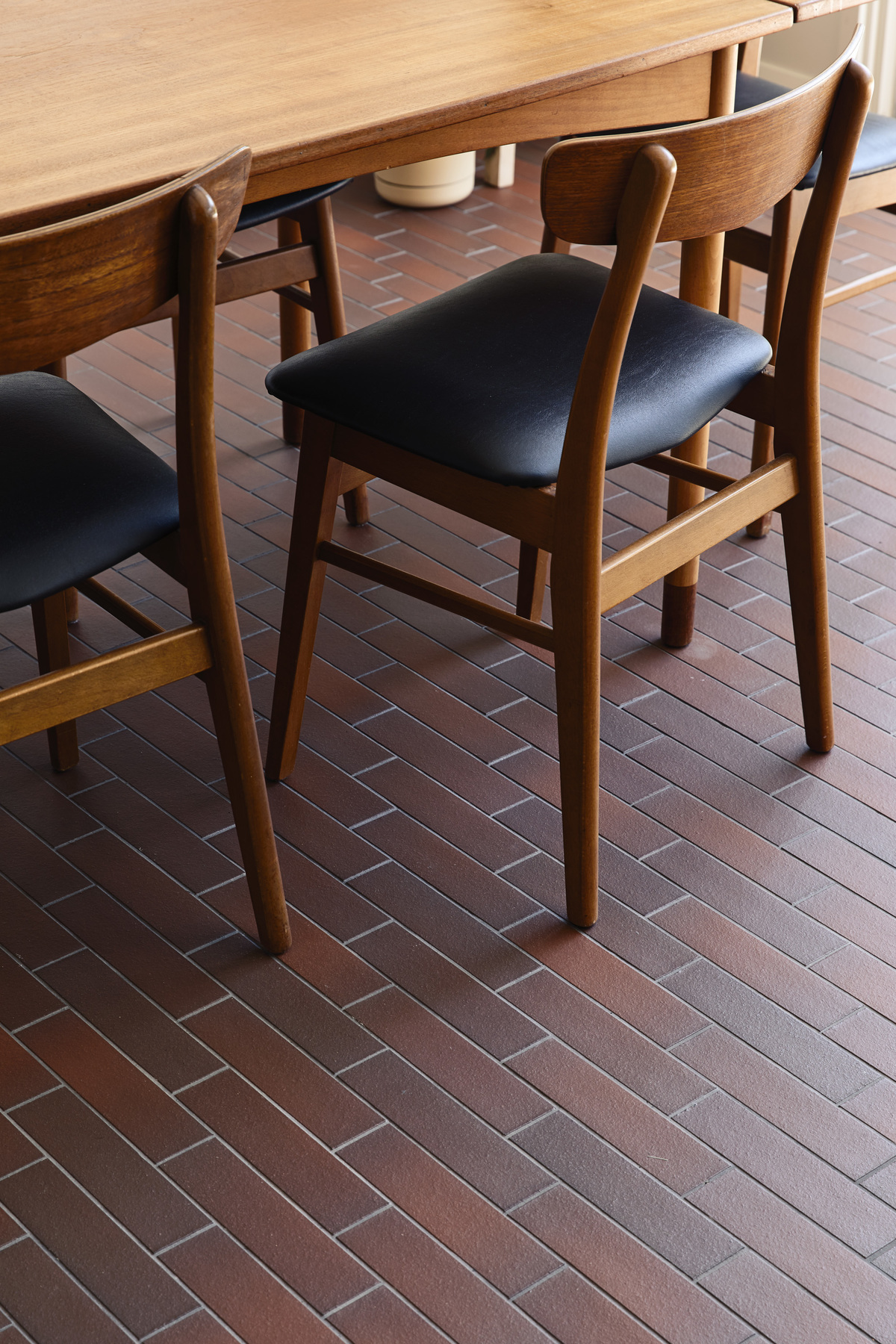 The natural clay fired clay tiles, American walnut veneer, and cedar lining boards were selected for their nostalgic connection to the period.