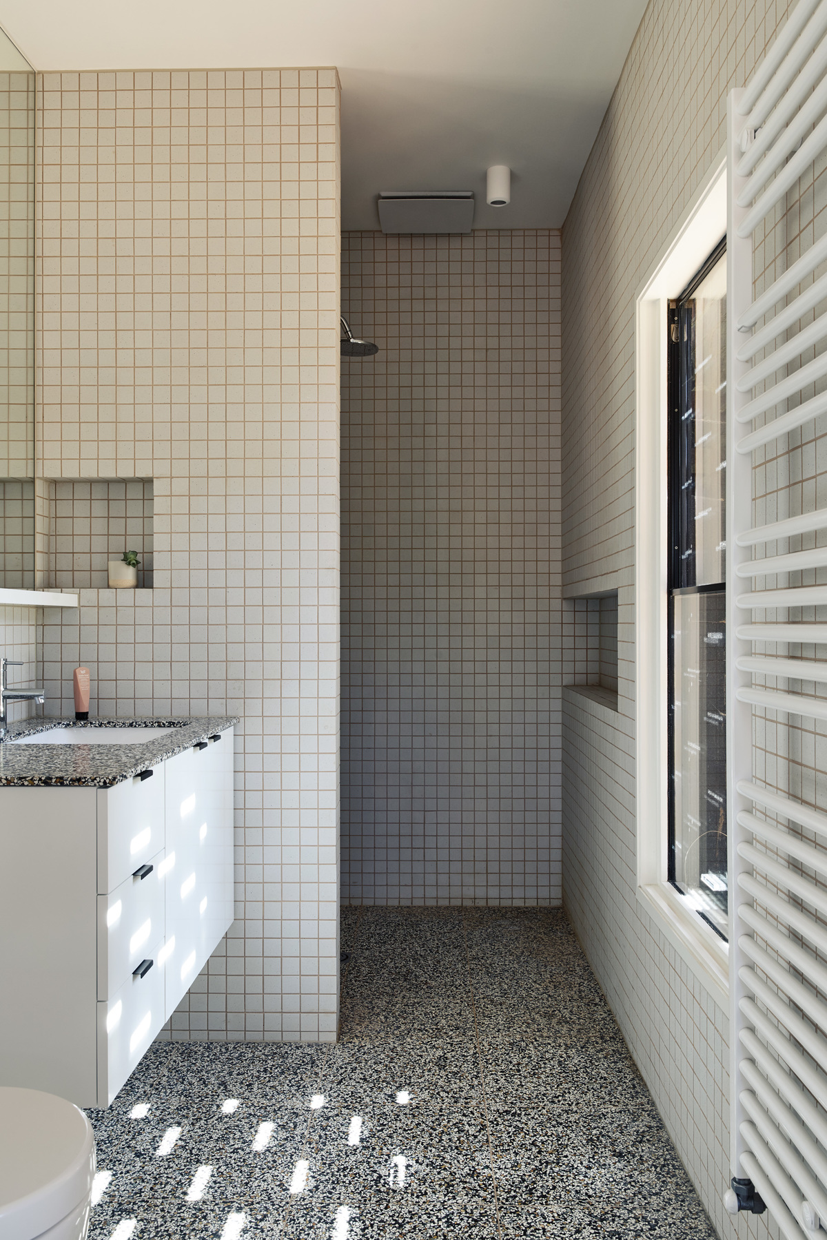 MRTN Architects’ design lifted the roof to provide greater ceiling heights than the original 2.2m low point in the bedrooms.