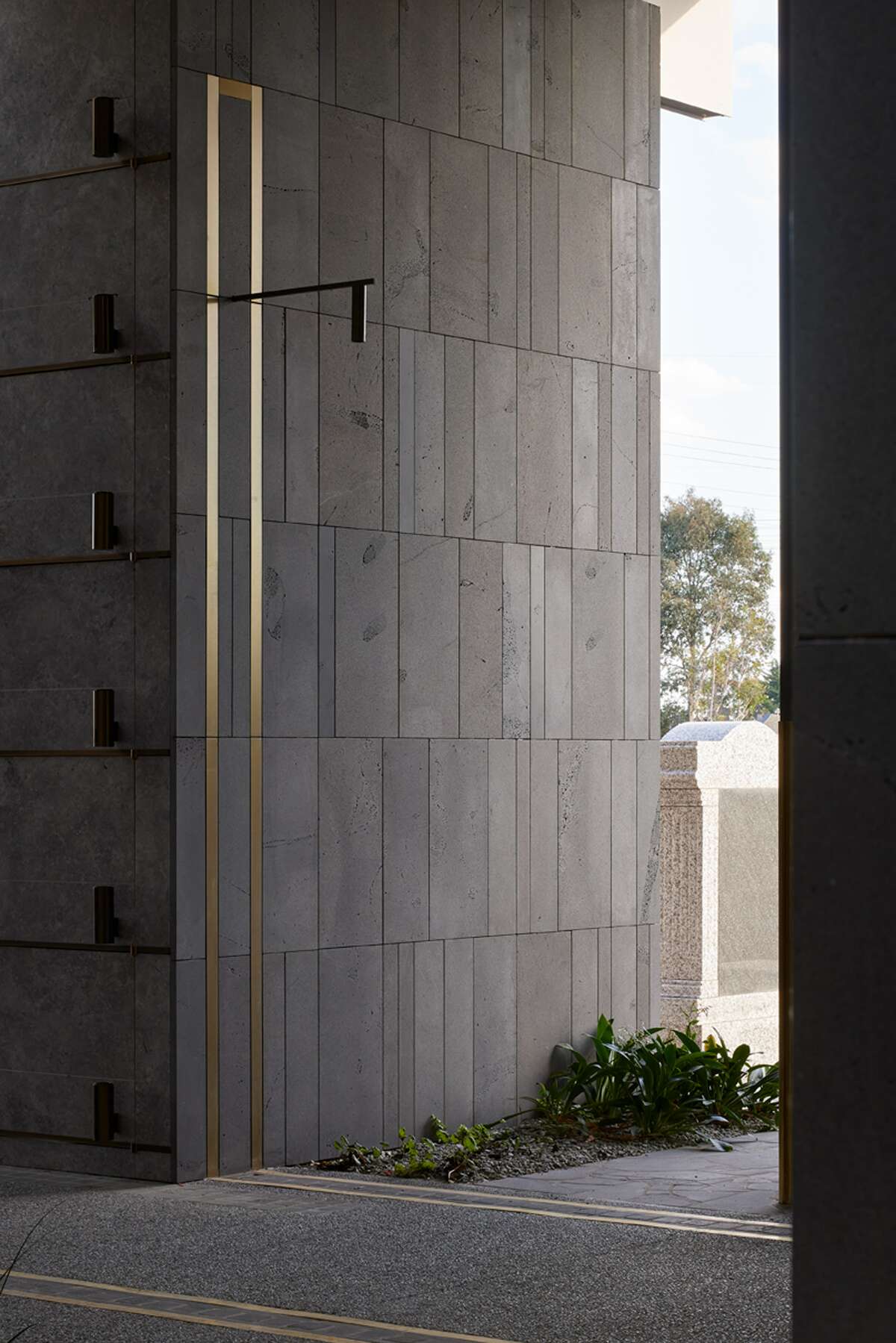 Inspired by the basalt plains upon which the cemetery sits, bluestone cladding, a material synonymous with the cultural and civic heritage of Melbourne, affords the mausoleum extension with a sense of both familiarity and monumentality.