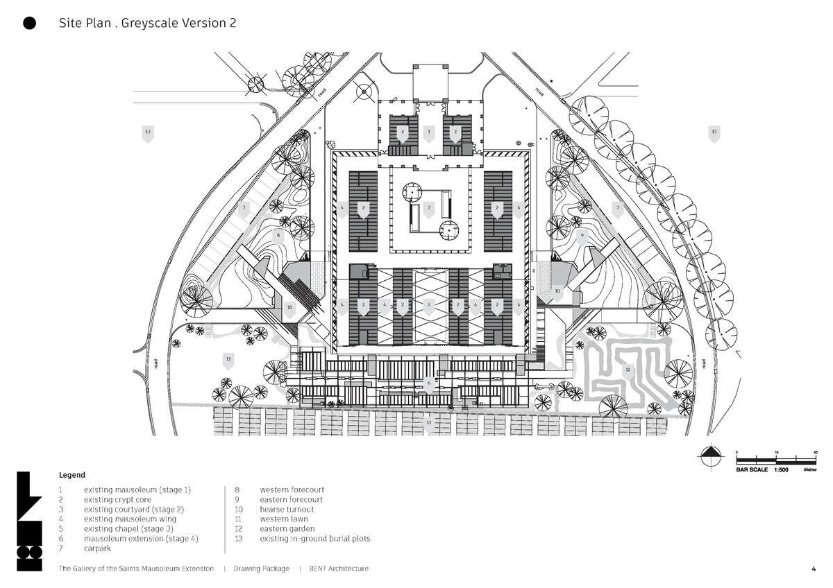 In a break from the formality of the existing mausoleum, the new structure was envisaged by the BENT design team as a mausoleum in a garden.