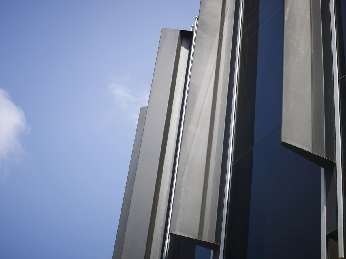 Shaped voids and overhangs are created to facilitate street shade, airflow and an exciting architectural journey from street to auditorium.