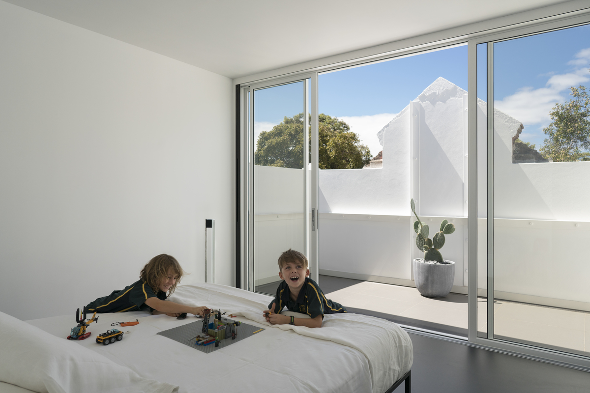 The ‘Z’ shaped additions are expressed as a contemporary insertion and clad in white aluminium composite panels, to contrast with the original brickwork.