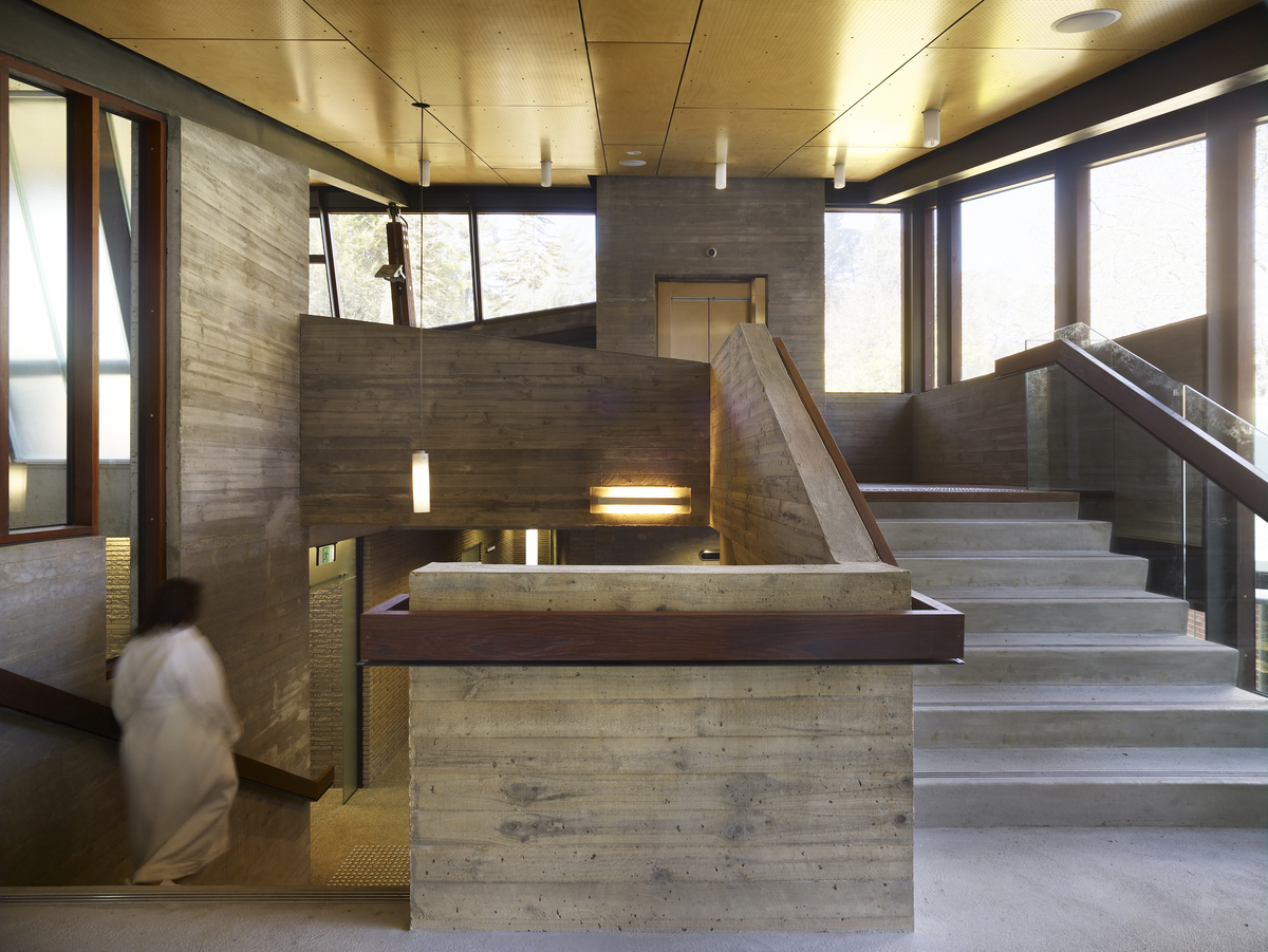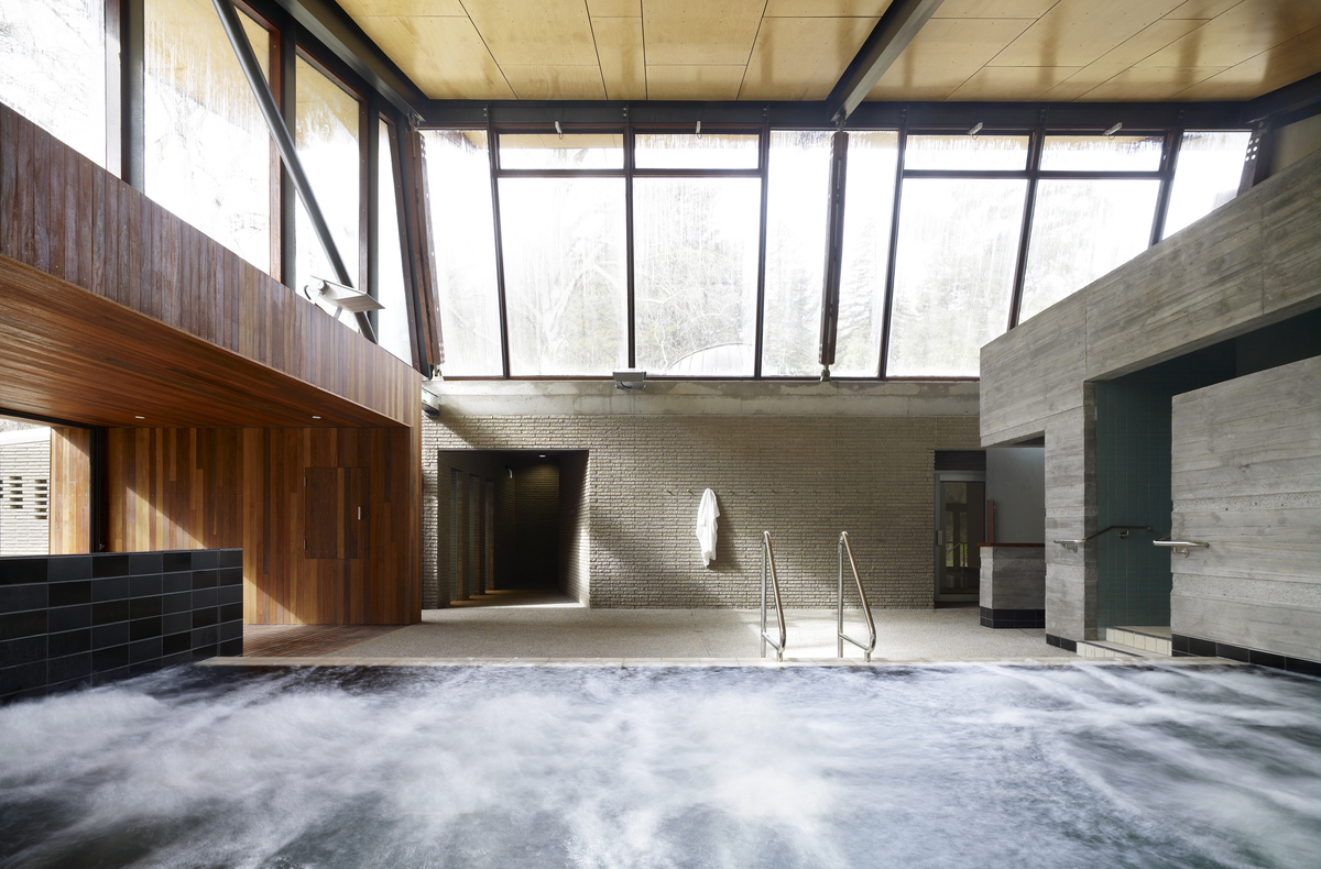 A minimum of applied finishes and selection of materials for their ability to withstand the corrosive mineral water environment resulted in a facility that will age gracefully and last.