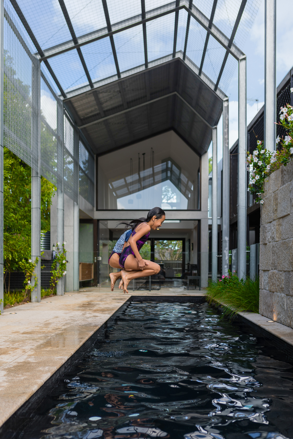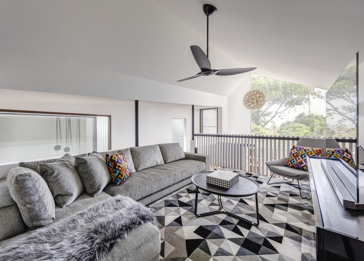 An external walkway overlooking the swimming pool was provided to link the upstairs bedrooms, giving the clients’ children a sense of independence as they grow into young adults.