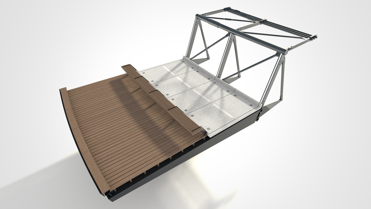 The bridge design celebrates invention and connection, acknowledging that bridges are public event spaces.