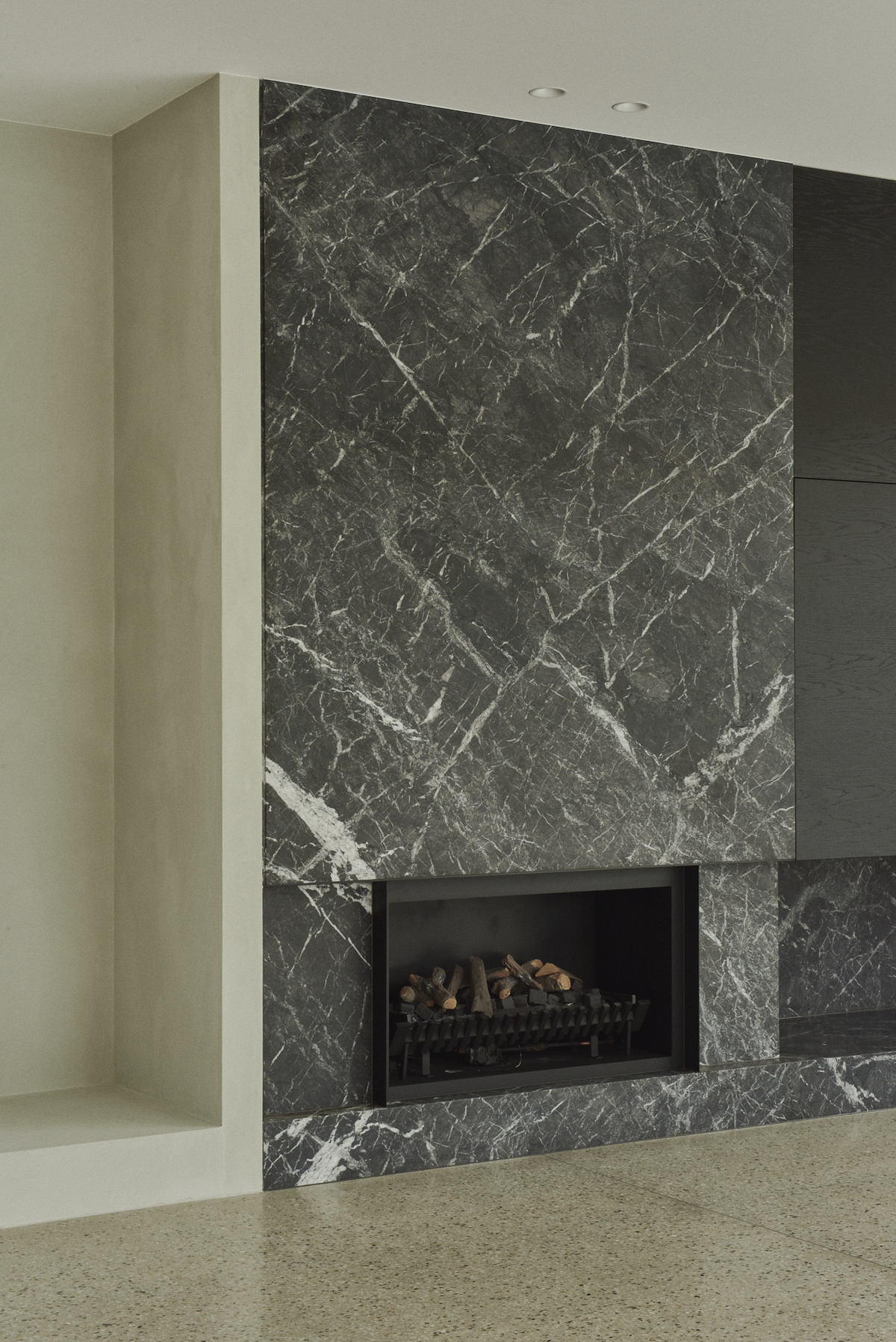 Following on, the open plan living area is centred around an impressive fireplace wall with a strong visual connection to the garden and alfresco terrace.