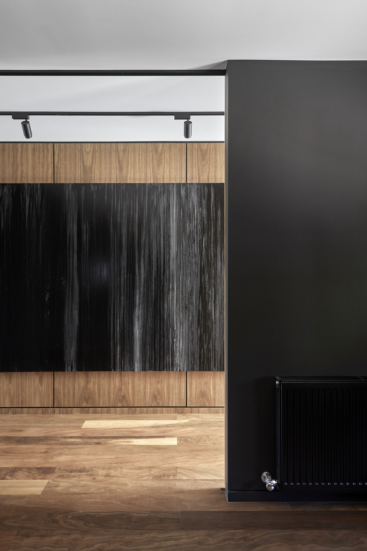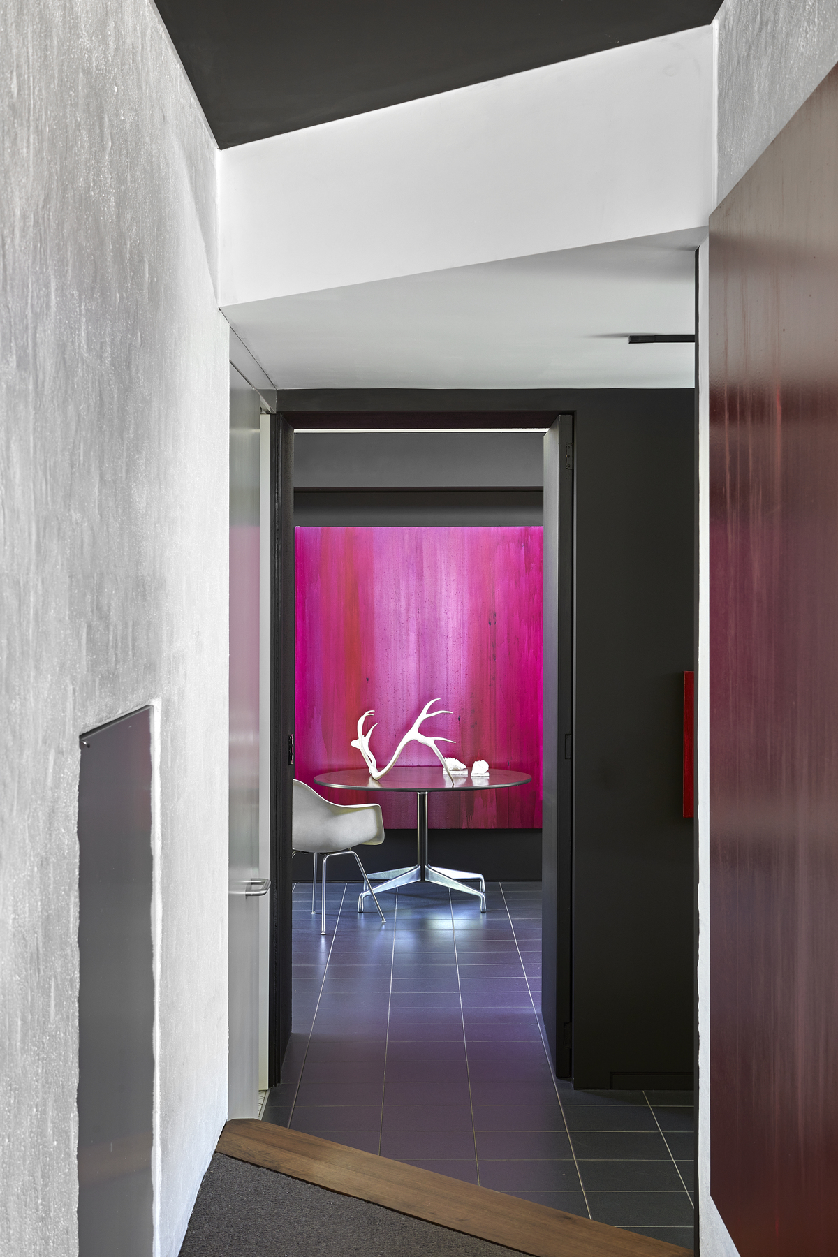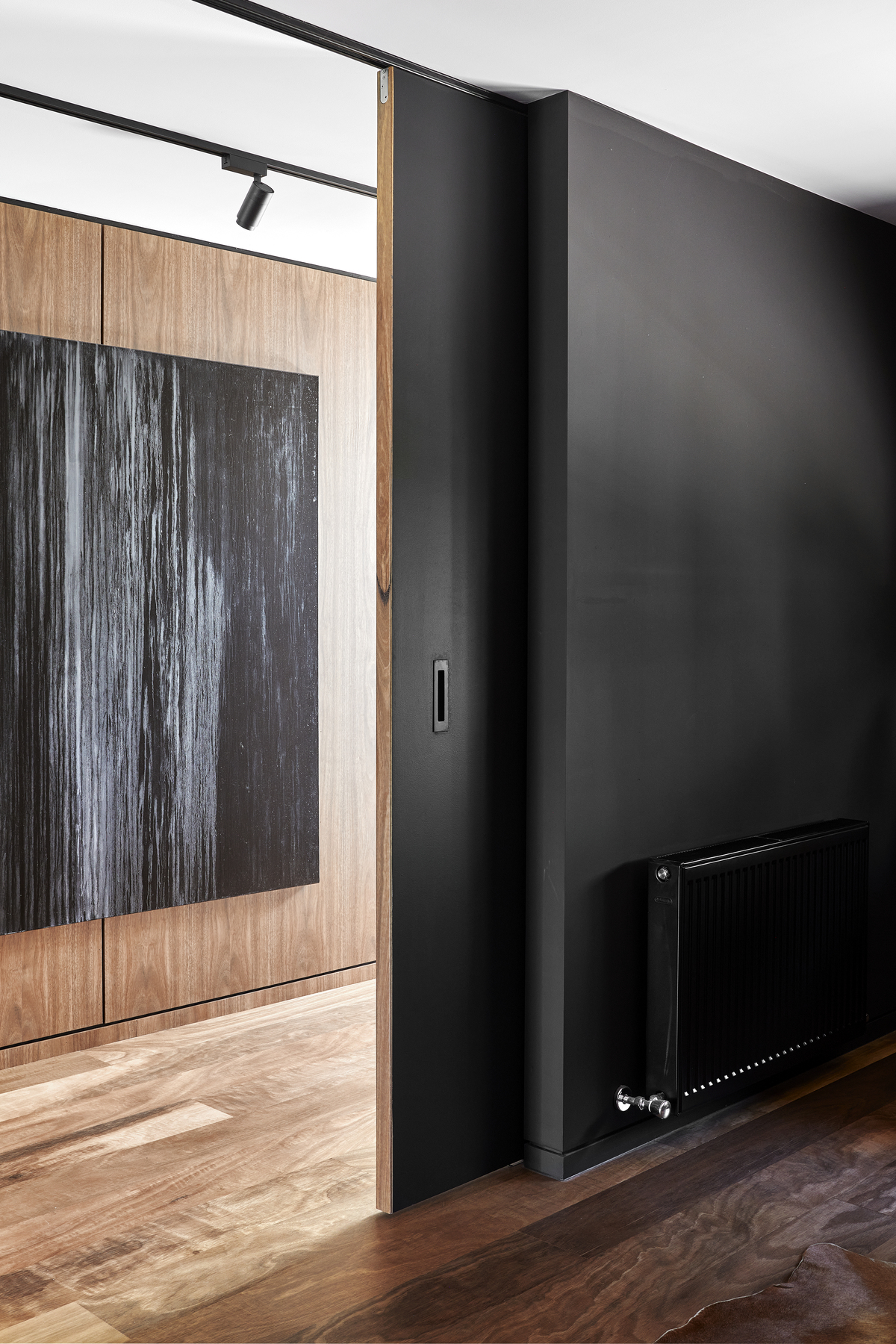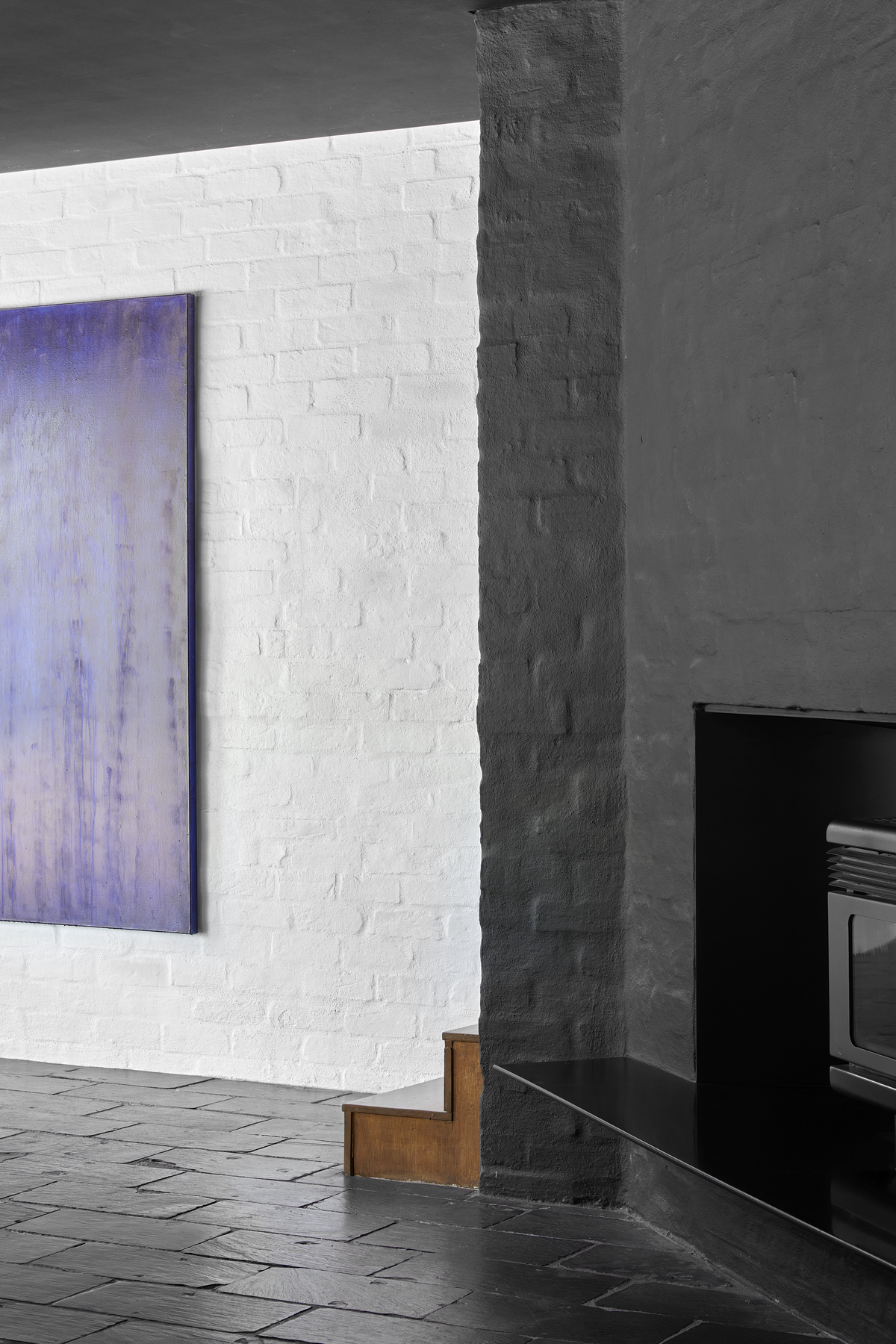 Internally they desired natural materials and a rich material immersion that evoked a gallery experience to provide a dramatic backdrop to their art collection.