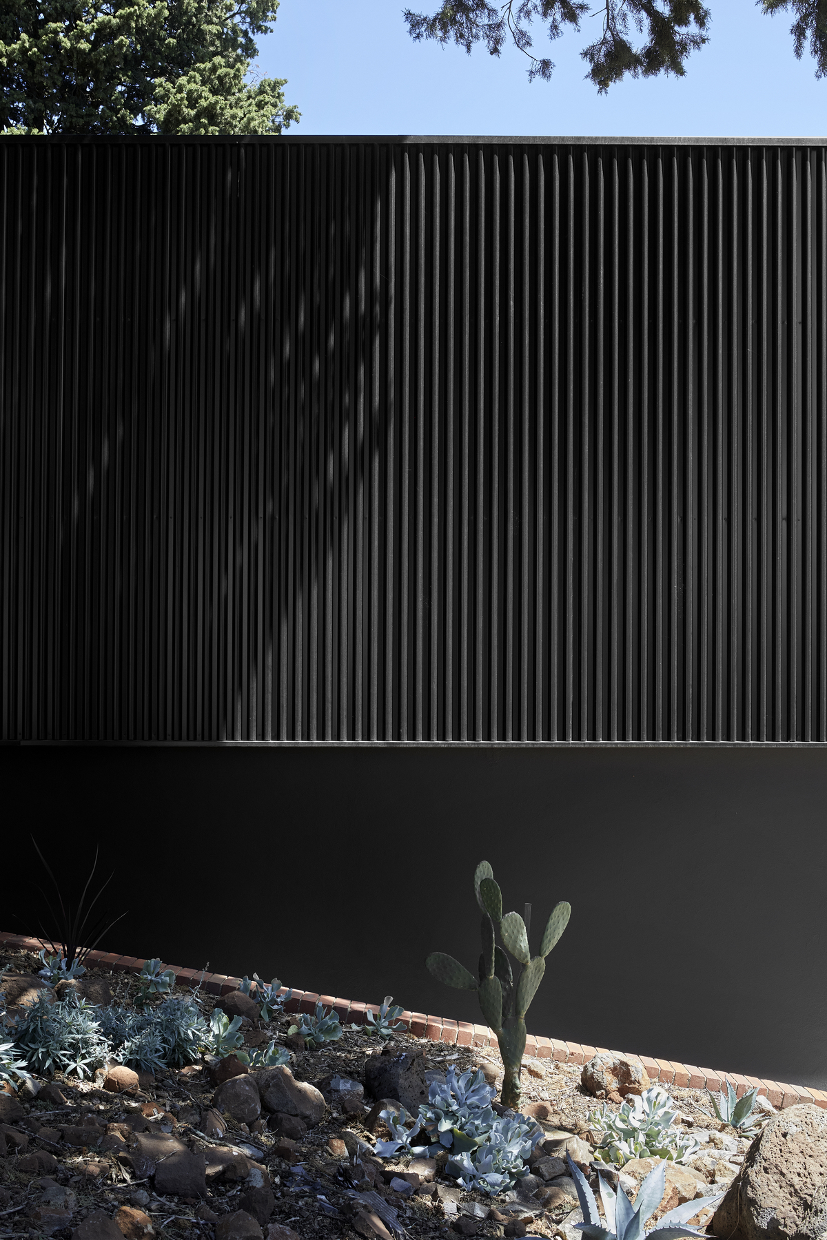 In the design, the MRTN team referenced abstract expressionist sculptors to propose an elevated black box that contained the additional bedroom suite but also created a carport under the cantilevered section.