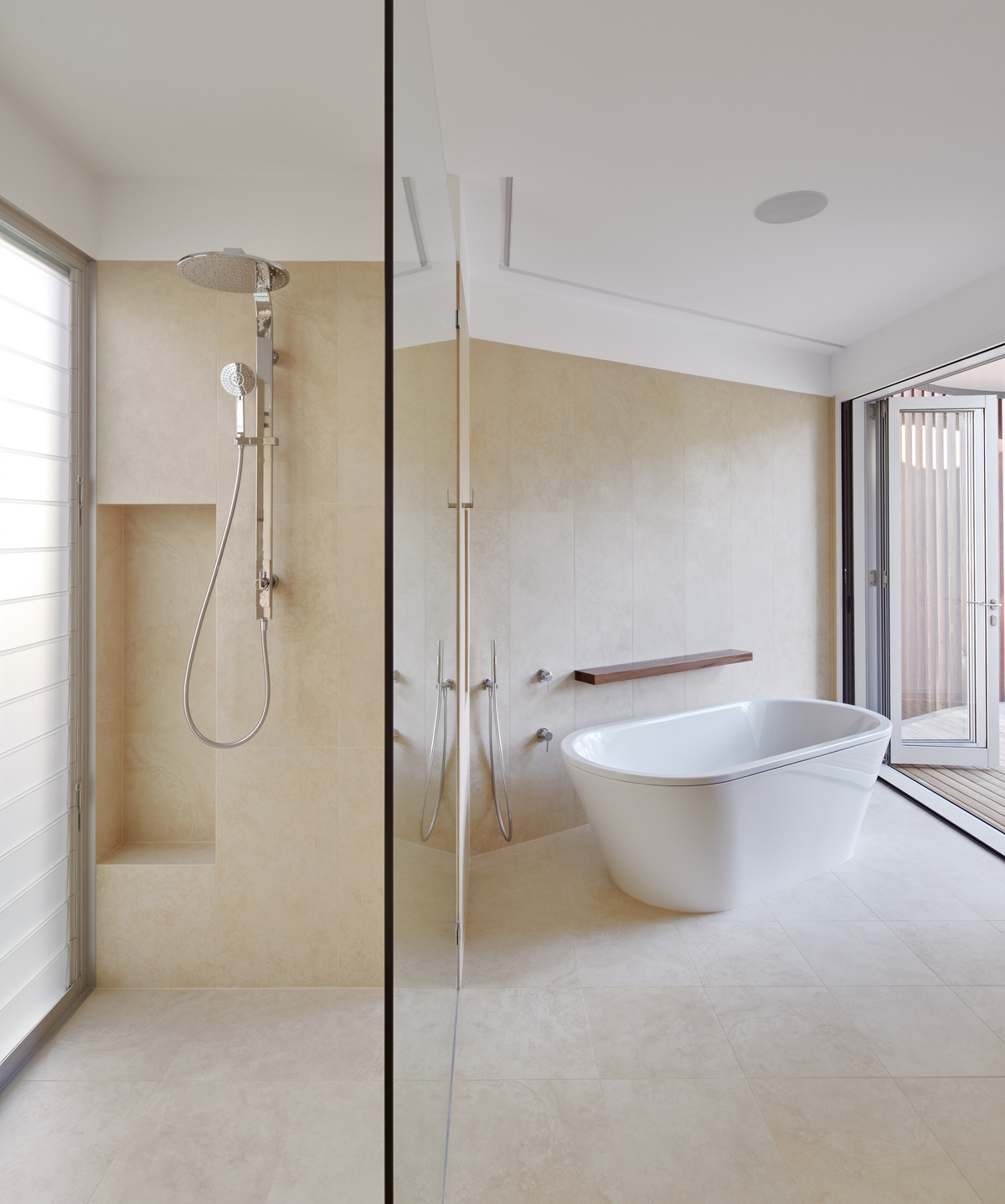 This was largely achieved by adopting the curved recycled timber batten screen to re-define the form of the house, provide shading and privacy, and to integrate the new with the old.