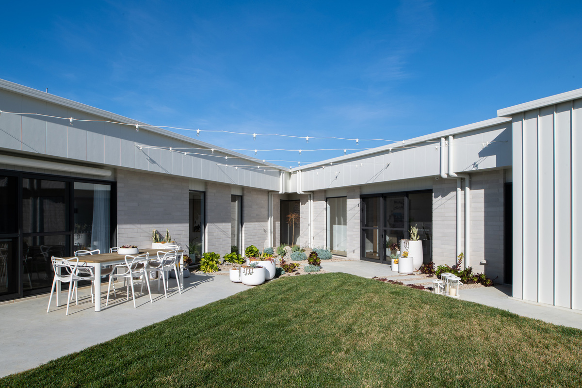 Positioned on a highly exposed site to traffic in amongst traditional urban sprawl, the building fronts the boundaries with blade walls providing screening to the private zones of the home.