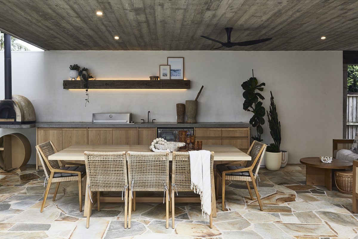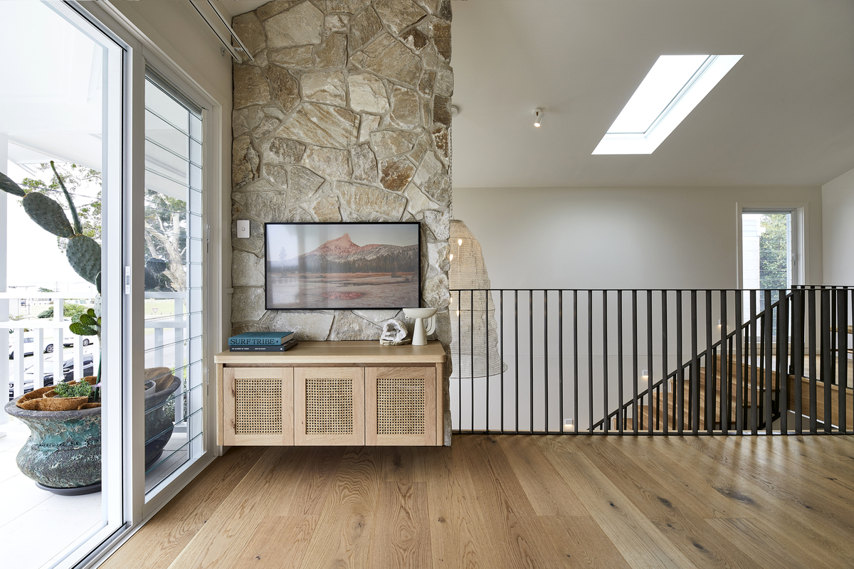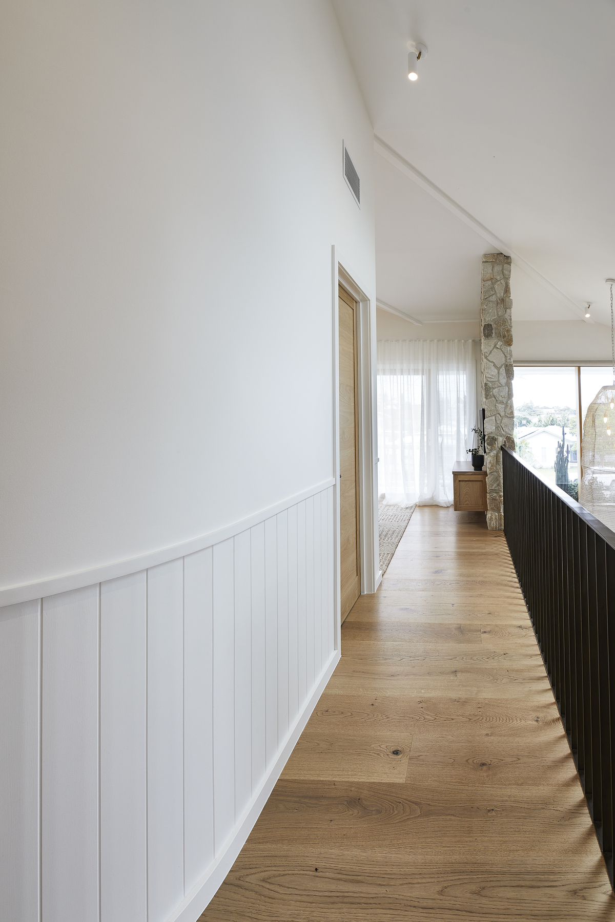 They wanted a larger home fit for their family that would connect with the surrounding beach and bush vernacular and provide an opportunity to showcase the craftsmanship of Loughlin Furniture’s joinery.