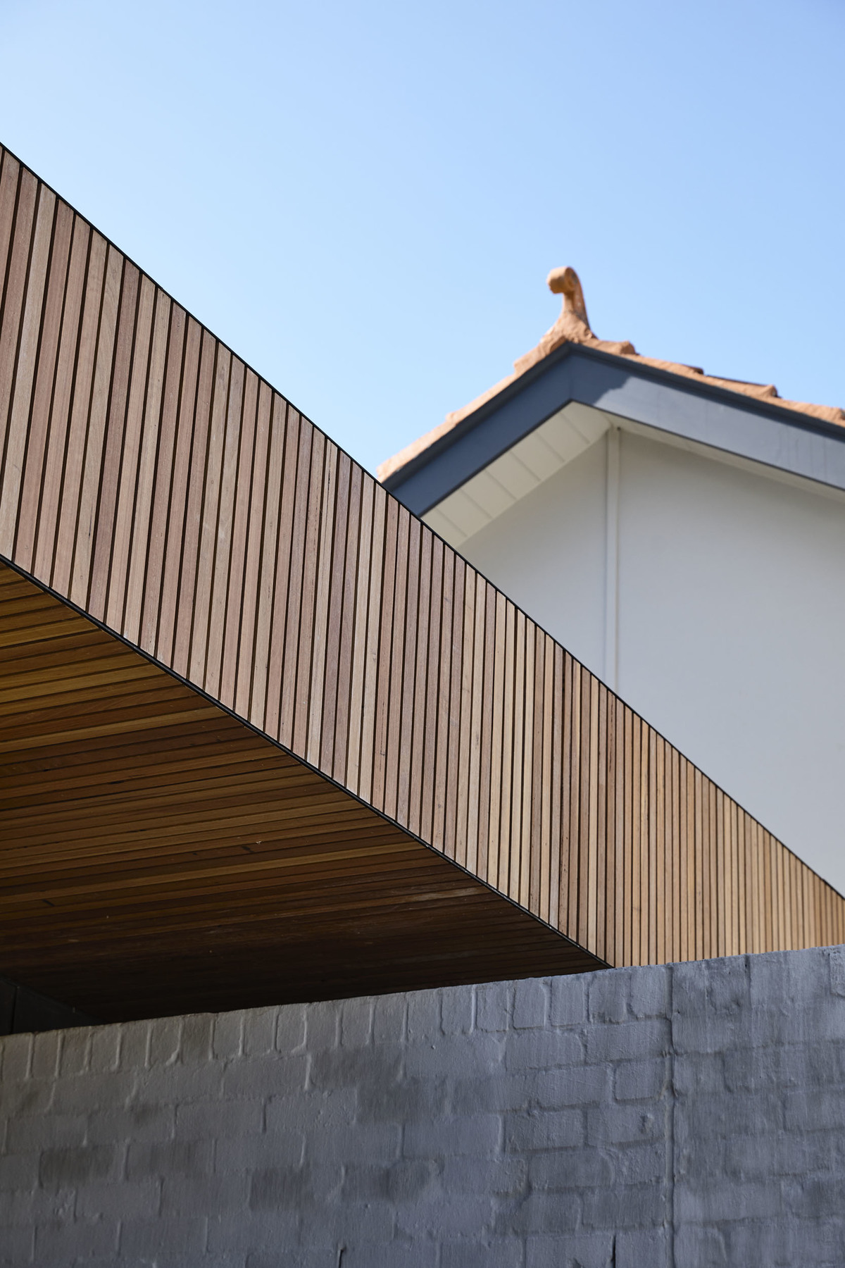 Sitting discreetly behind the original, the new pavilion is at once subservient and subversive to the existing building.