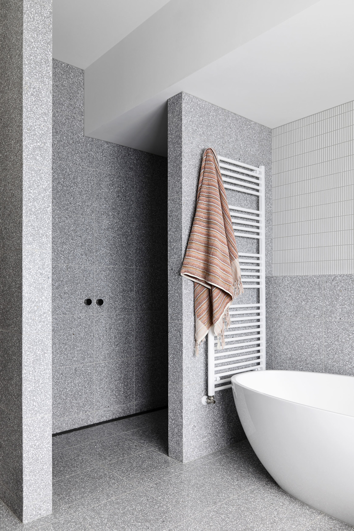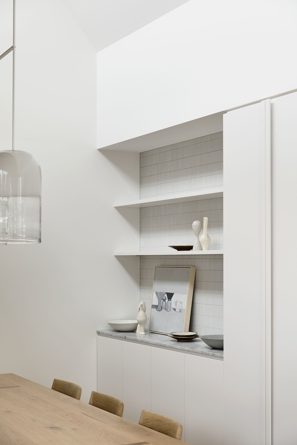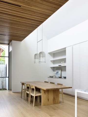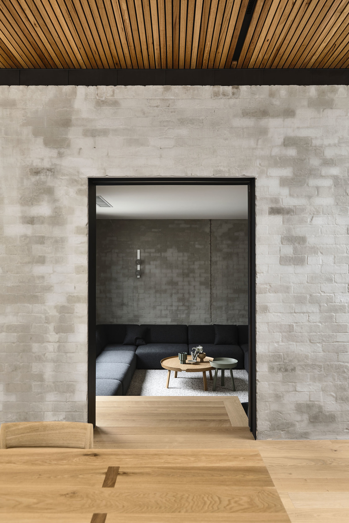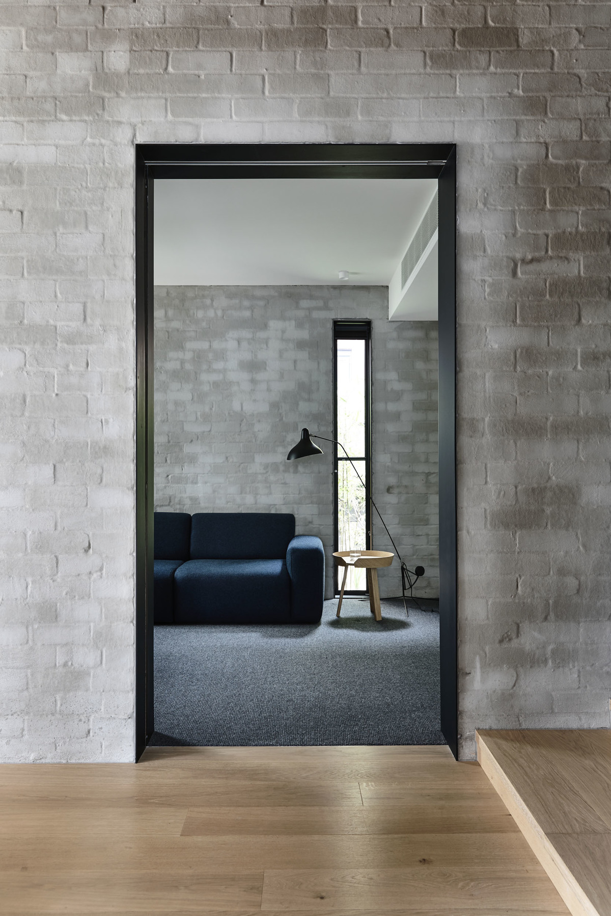 The existing home’s period details were preserved, while in the new design, plaster was minimised in favour of a robust palette of bagged brickwork, timber and steel that is contemporary, tactile and enduring.