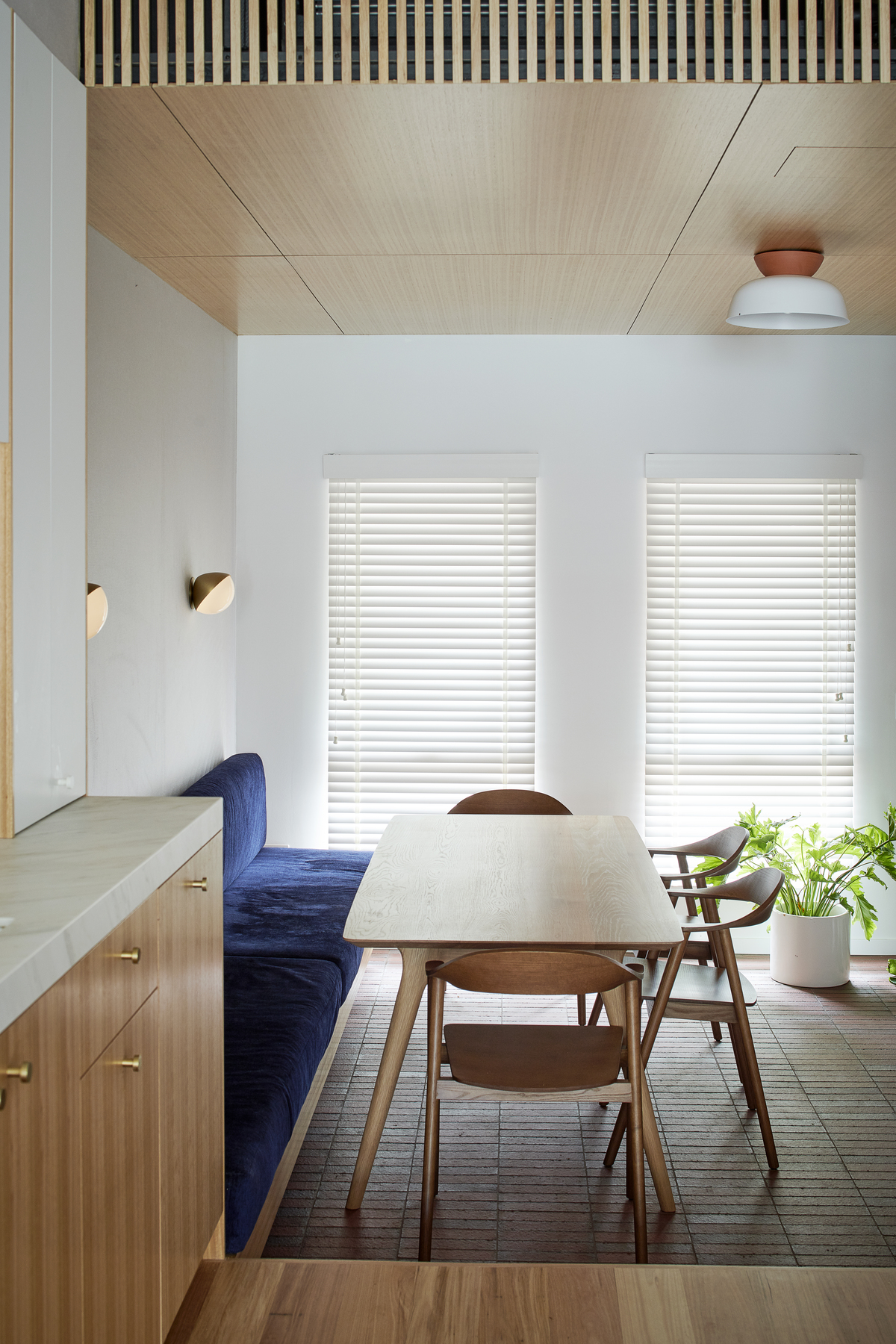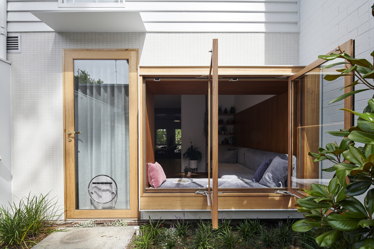 This modest package of spaces, built elements and details have been carefully tailored to the requirements of an enterprising retired couple who have downsized to the inner north of Melbourne.