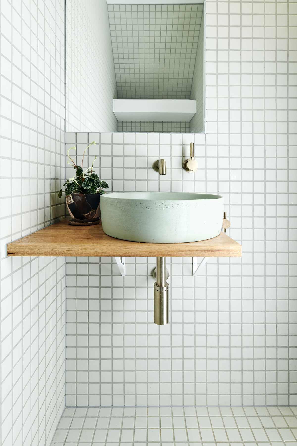 - Powder room basin – ‘Eclipse Basin’ in Mint by Concrete Nation